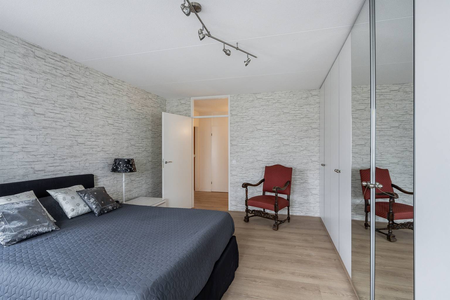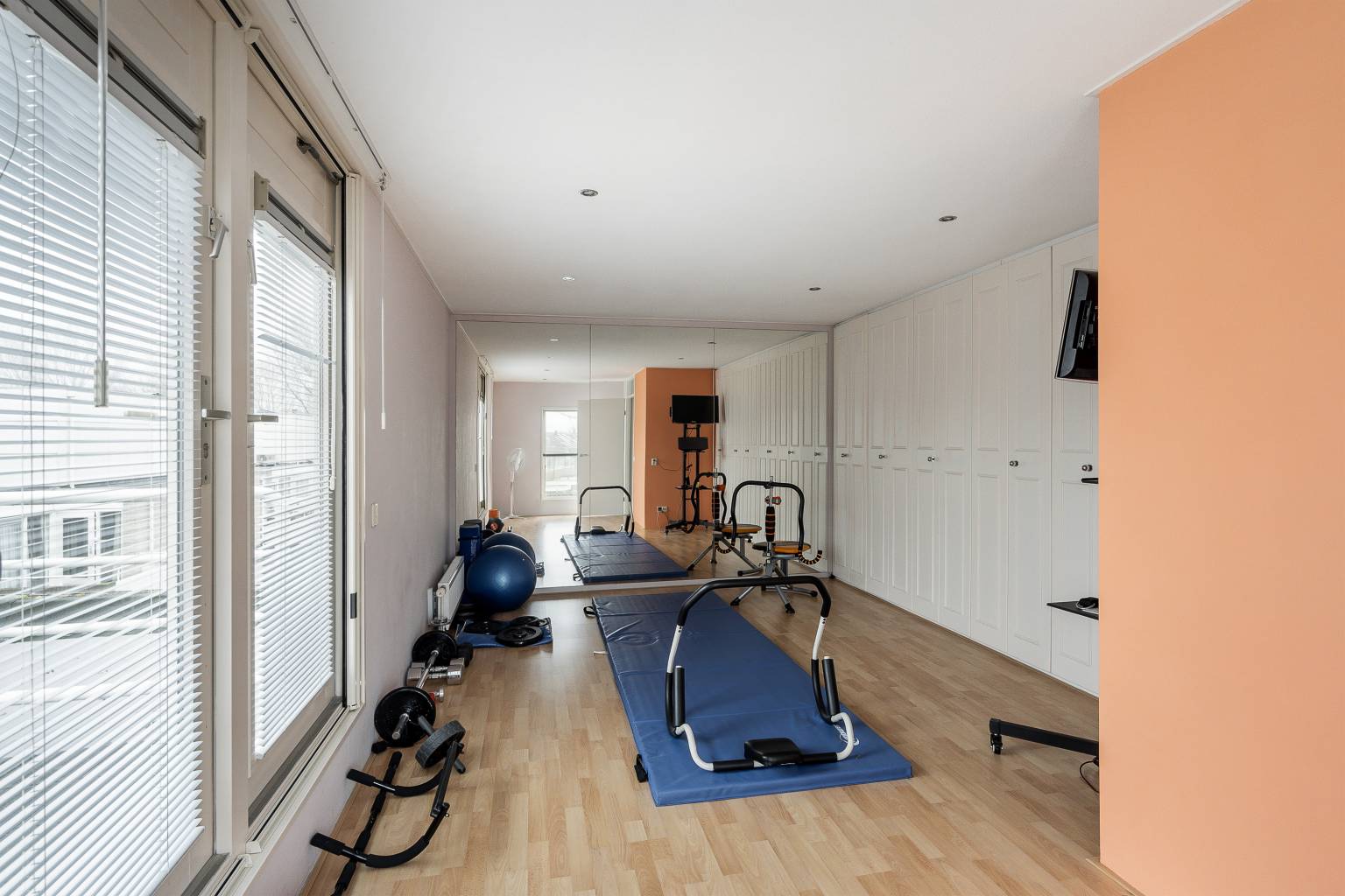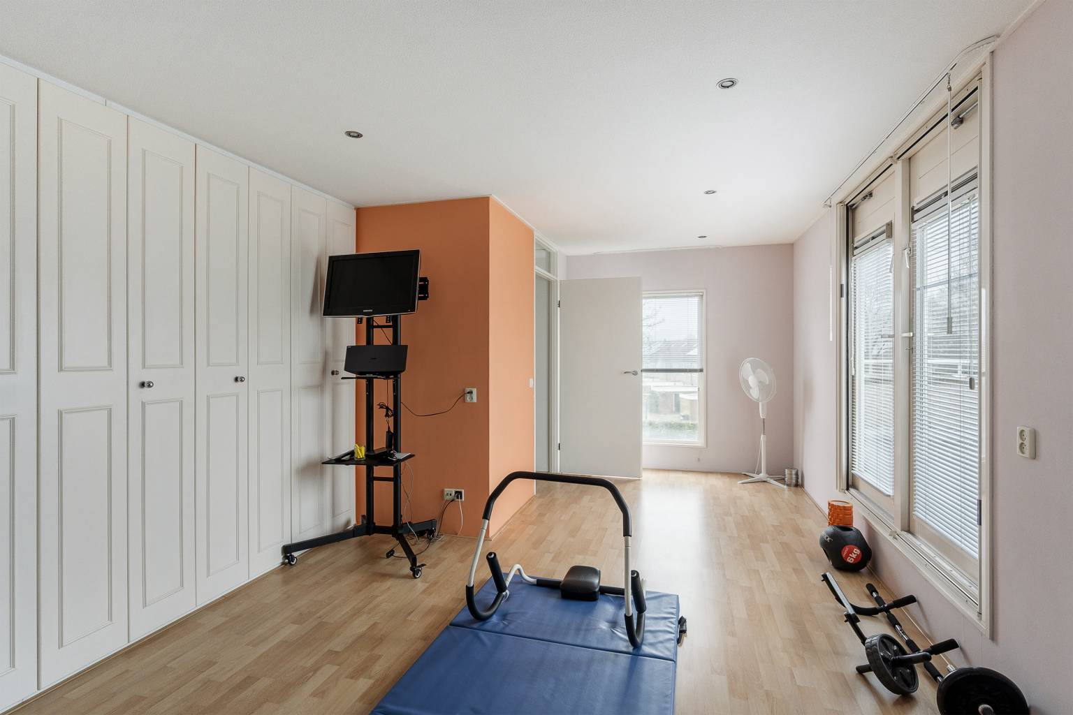 De zesde en zevende slaapkamer zijn beiden voorzien van een grote kastenwand en geven door middel van openslaande deuren toegang tot een eigen dakterras. Eén slaapkamer is nu ingericht als een fitnessruimte en heeft een grote spiegelwand en in het plafond zijn inbouw spots verwerkt.