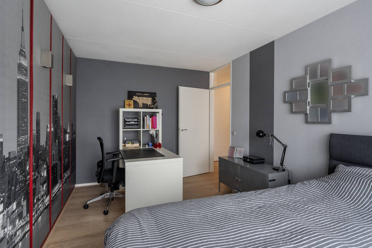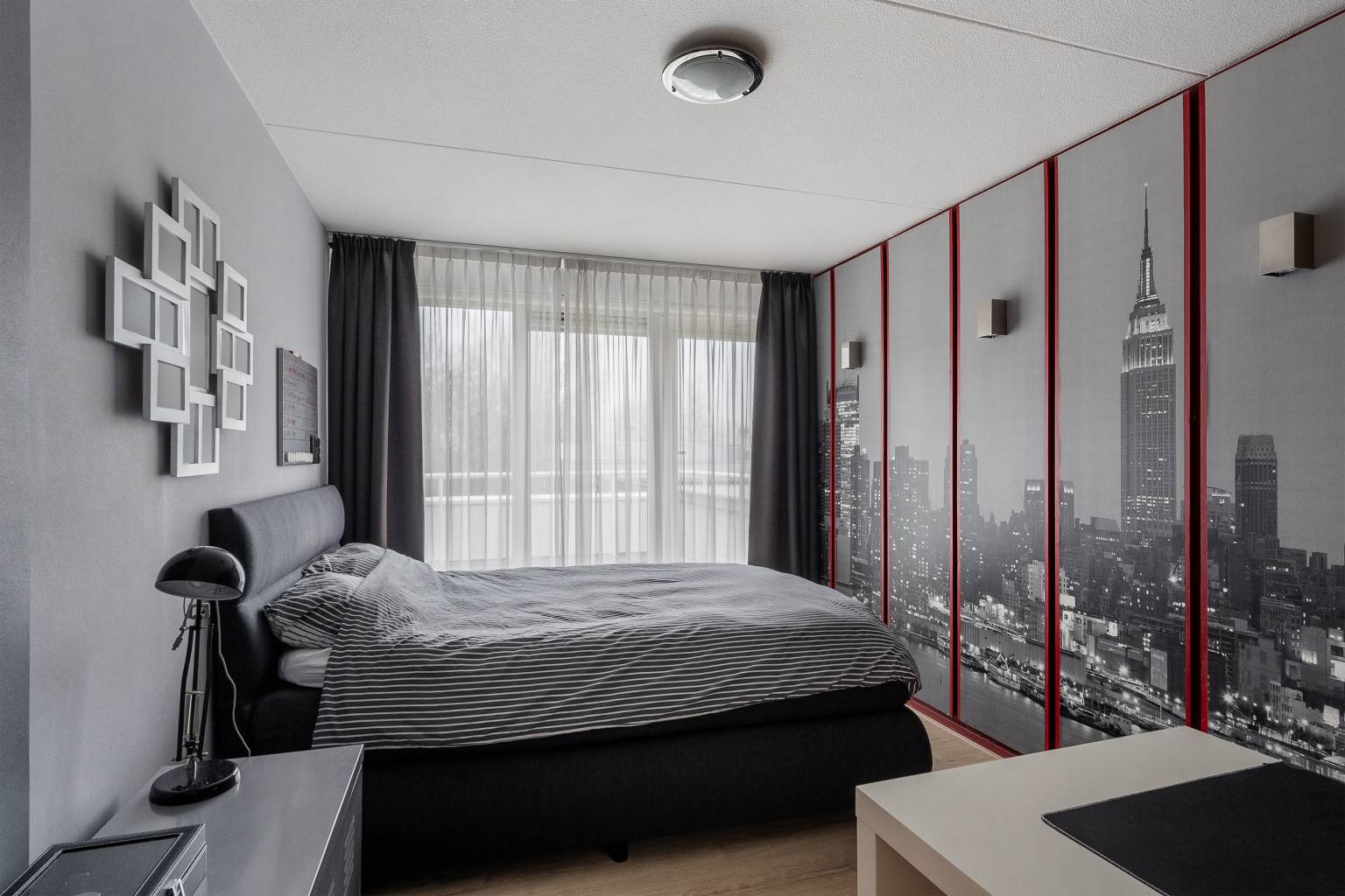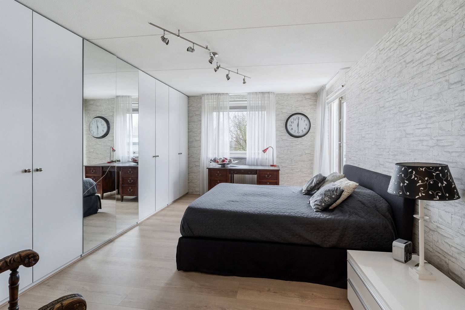 De zesde en zevende slaapkamer zijn beiden voorzien van een grote kastenwand en geven door middel van openslaande deuren toegang tot een eigen dakterras. Eén slaapkamer is nu ingericht als een fitnessruimte en heeft een grote spiegelwand en in het plafond zijn inbouw spots verwerkt.
