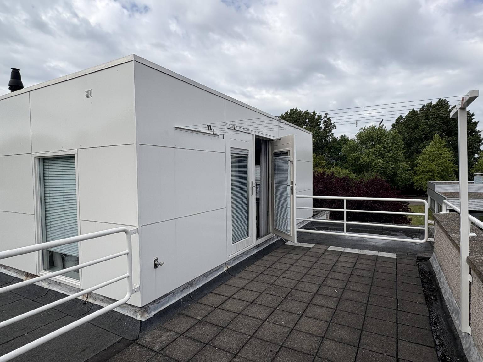 De twee balkons op de eerste verdieping zijn gelegen op de hoeken van de woning, aan de achterzijde. Daardoor bieden zij een fijn zicht naar de achtertuin. De vloer is bedekt met tegels en daardoor zijn zij nagenoeg onderhoudsvrij.