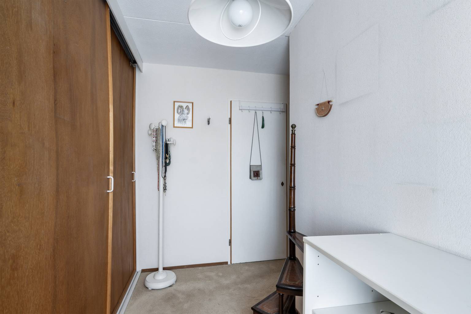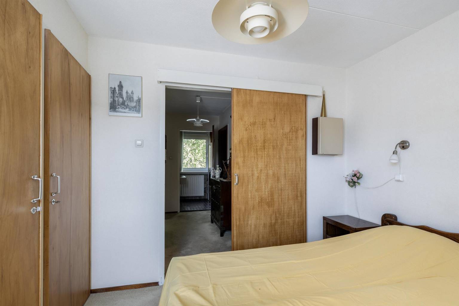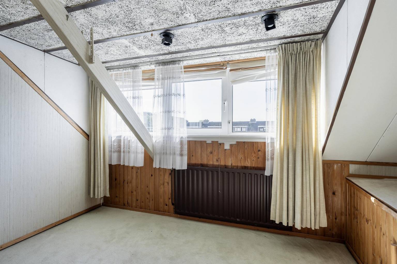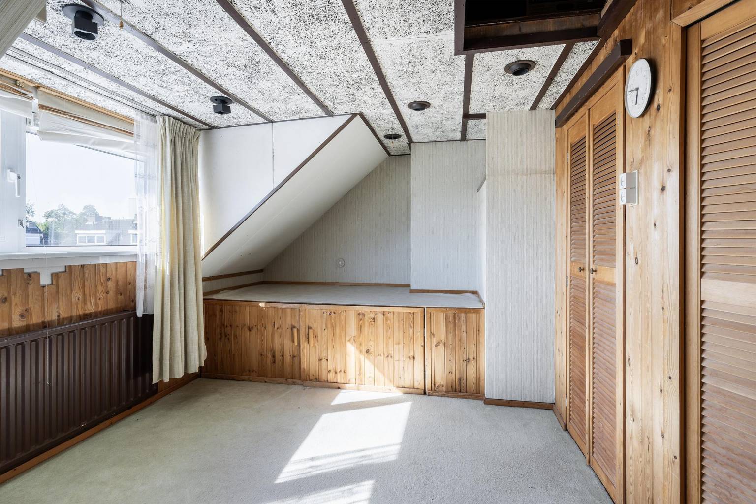 De extra slaapkamer is voorzien van een wastafel, een vaste kast en een dakraam. De vloer is voorzien van vloerbedekking en en onder de schuine kap zijn knieschotten aanwezig.