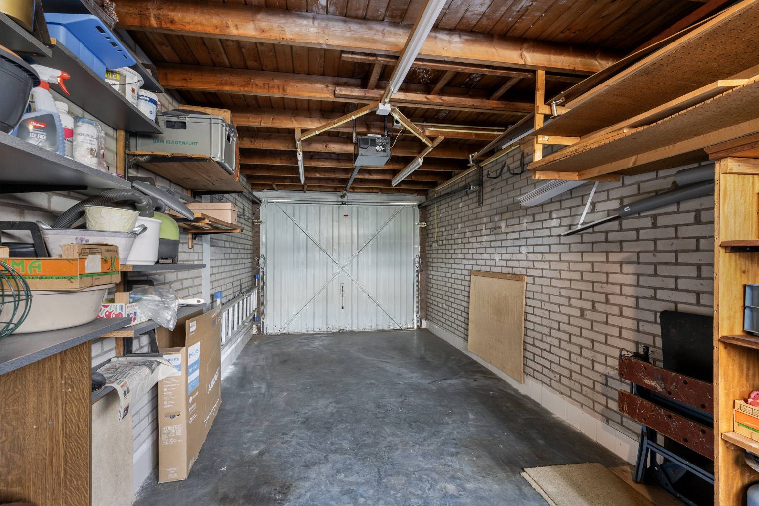 - Eigen grote garage met garagedeur, elektra en verlichting