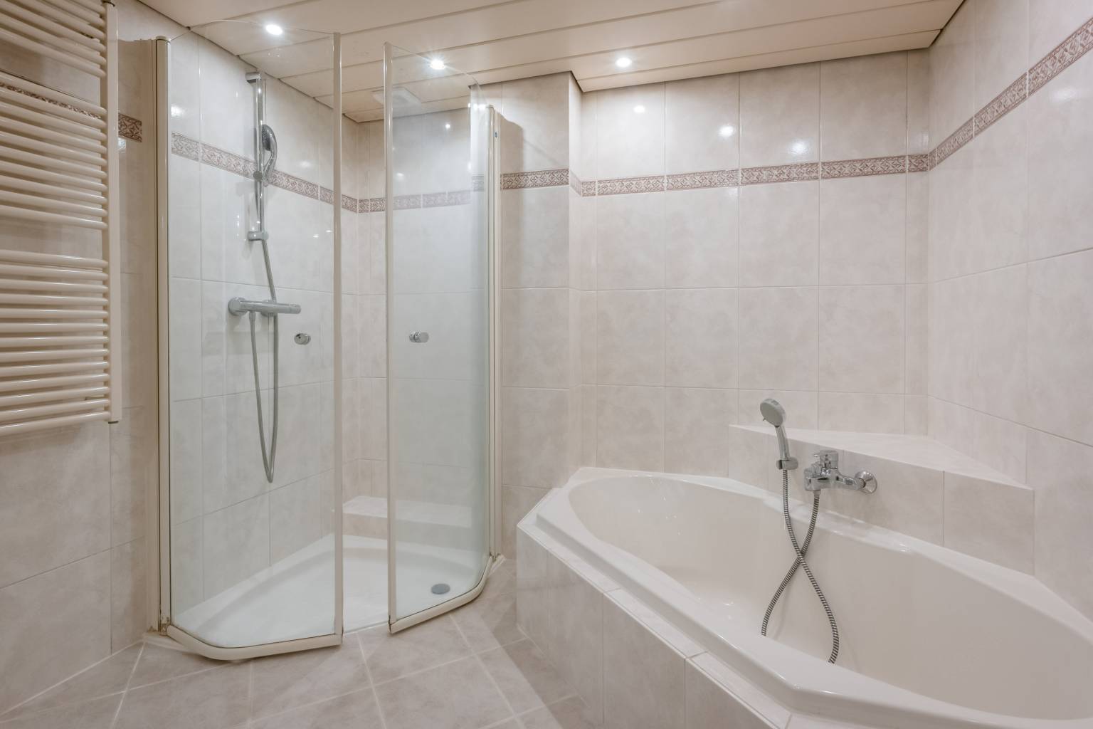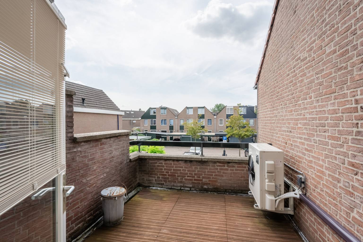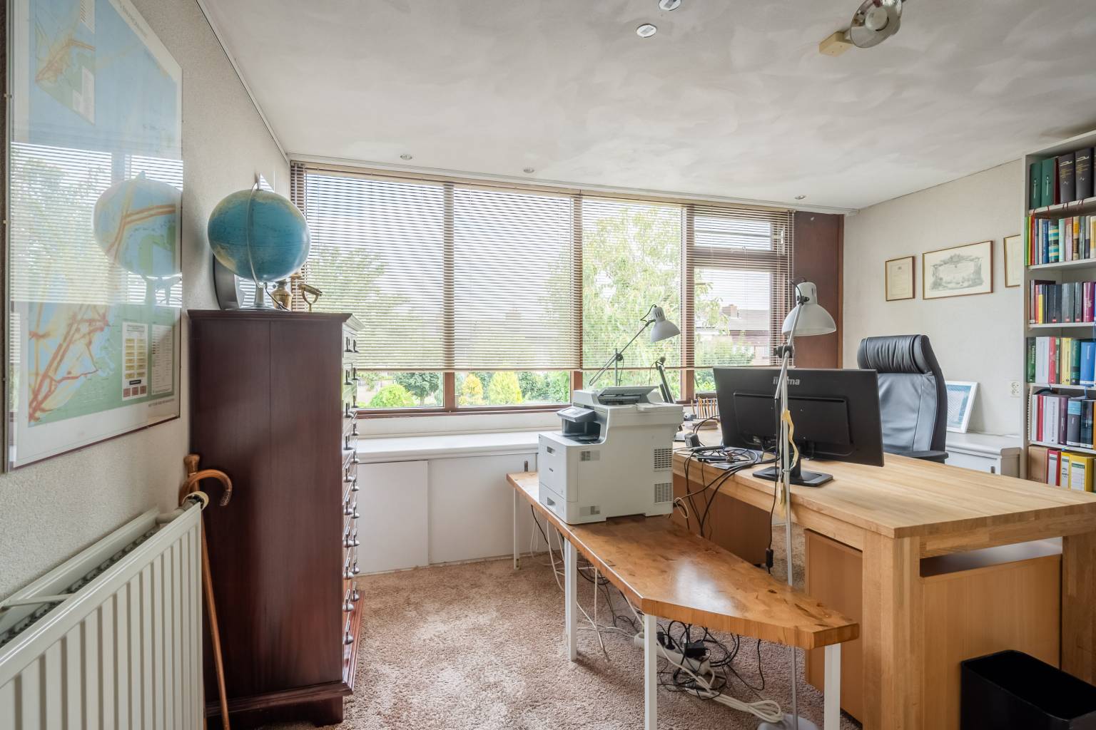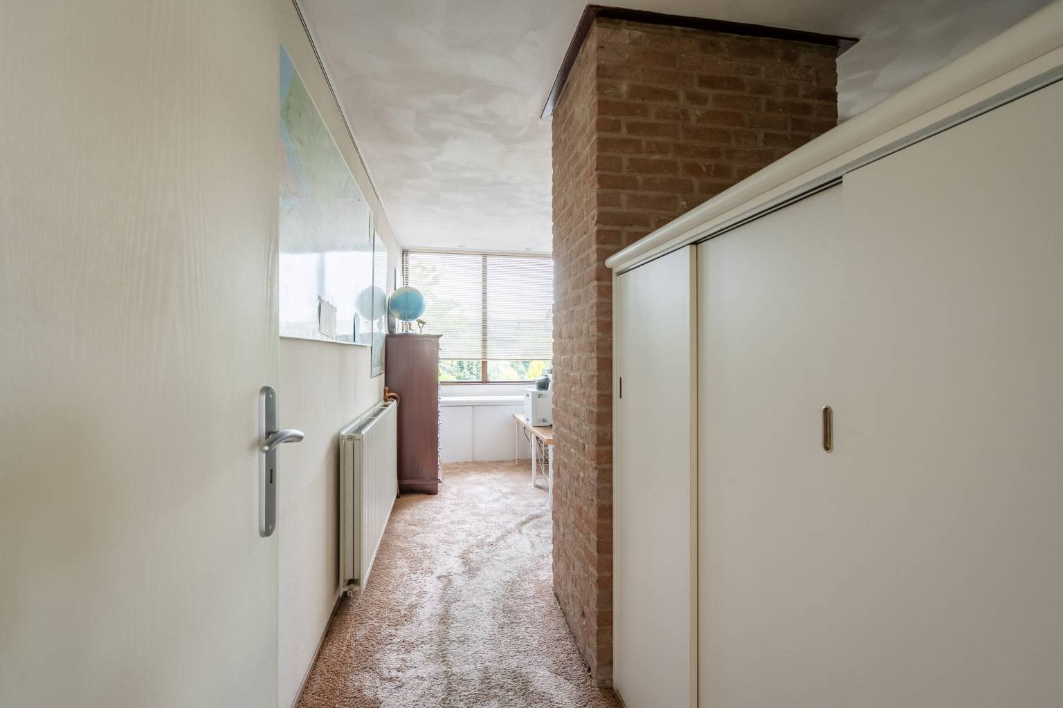 De open wenteltrap in de woonkamer geeft een veelzijdige invulling van de ruimte en biedt toegang tot de overloop van de eerste verdieping. De overloop is goed bemeten en heeft plaats voor bijvoorbeeld een bureau. Zo kunt u hier bijvoorbeeld een werkplek creëren en tussentijds genieten van de frisse lucht op het terras. Verder bevinden zich op de eerste verdieping drie slaapkamers, de badkamer en een vaste kast. Eén van de slaapkamers is aan de voorzijde van de woning gelegen en biedt ruim voldoende plaats voor zowel een tweepersoonsbed als een vaste kast. Ditzelfde geldt voor de slaapkamers aan de achterzijde. Eén van deze twee is op dit moment ingericht als werkkamer en uitzonderlijk ruim te noemen. Zo wordt werken aan huis wel heel aantrekkelijk gemaakt. Natuurlijk kan deze kamer geheel naar eigen wens worden ingericht en ook dienen als bijvoorbeeld kinder-/speelkamer. Het laatste vertrek van deze verdieping is de volledig betegelde badkamer. Ook hier is een zee aan ruimte en daardoor een fijne plek om in alle rust de dag te kunnen starten en te eindigen. De badkamer is voorzien van een ligbad, een douchecabine, een wastafelmeubel met dubbele wasbak, een zwevend toilet, handdoeken radiator en mechanische ventilatie.