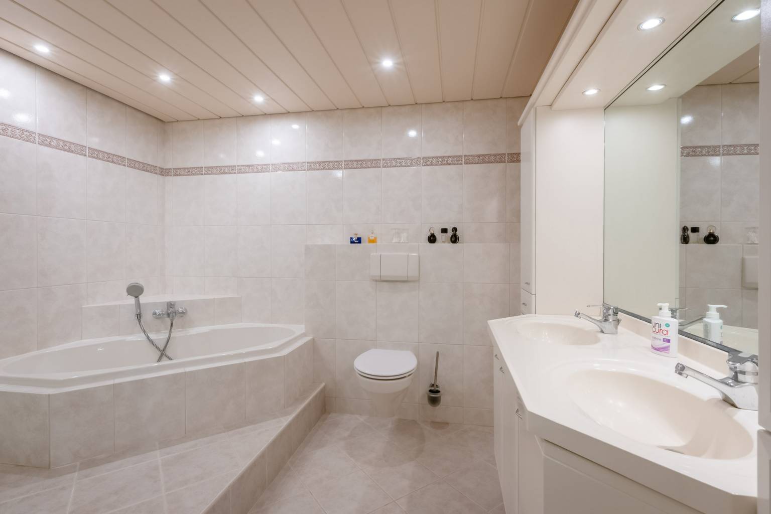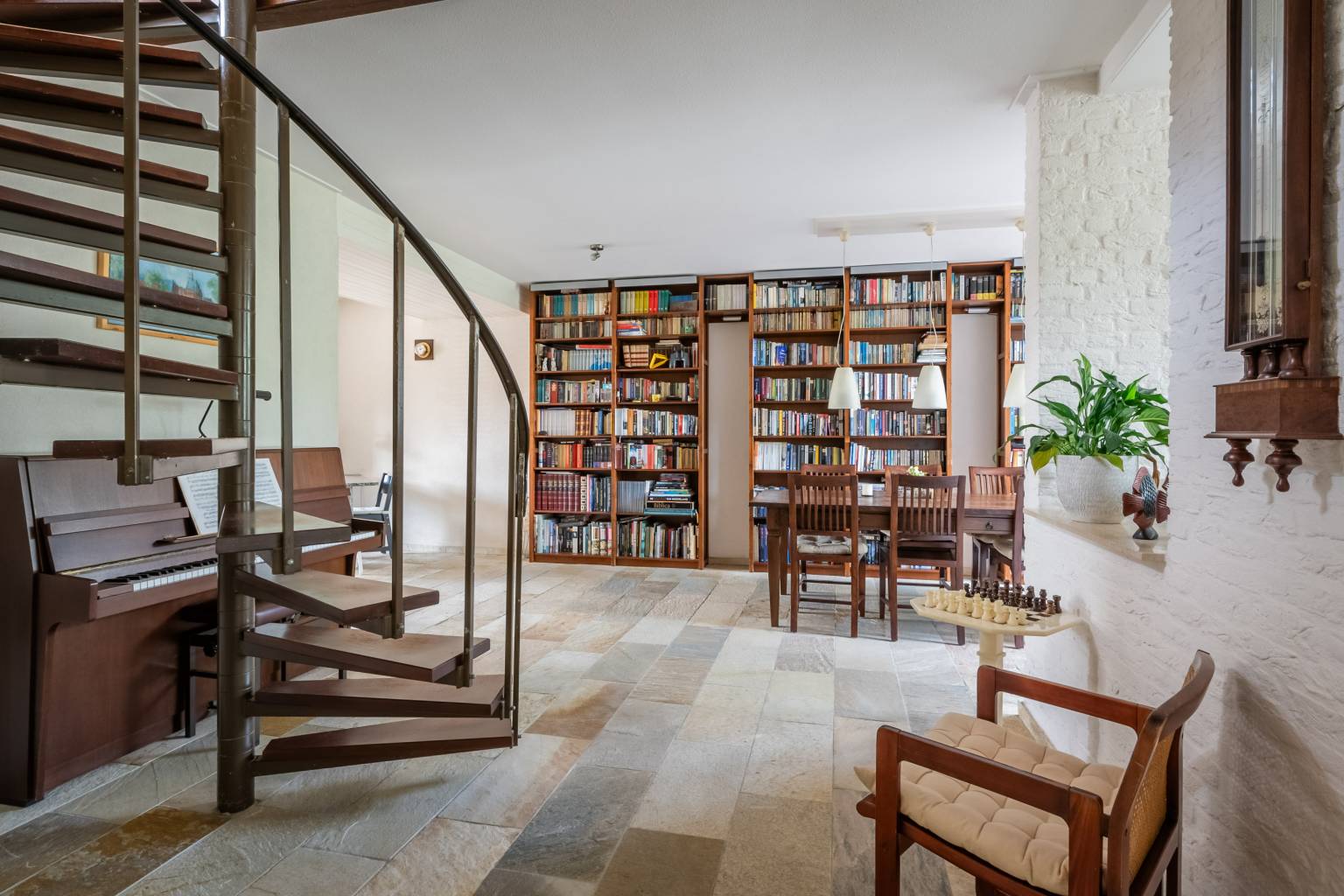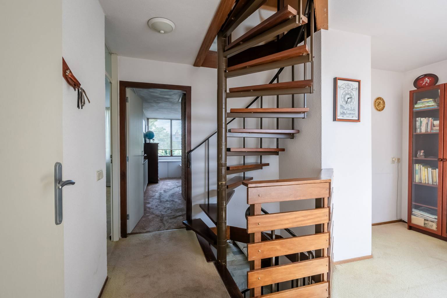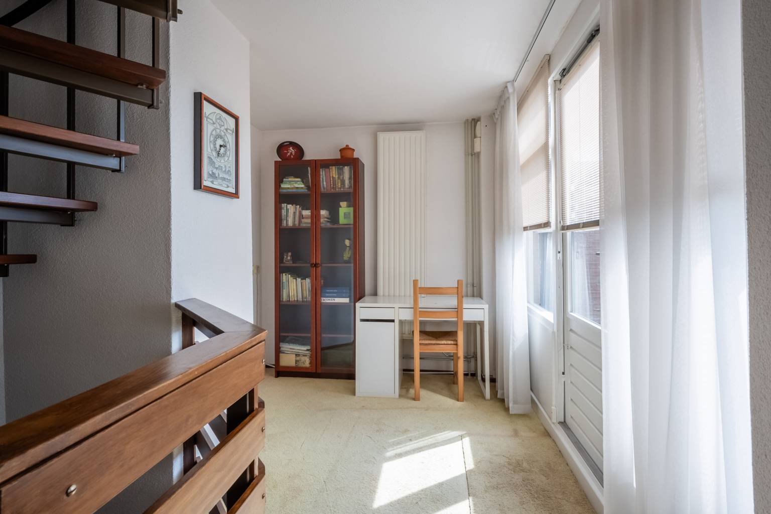 De open wenteltrap in de woonkamer geeft een veelzijdige invulling van de ruimte en biedt toegang tot de overloop van de eerste verdieping. De overloop is goed bemeten en heeft plaats voor bijvoorbeeld een bureau. Zo kunt u hier bijvoorbeeld een werkplek creëren en tussentijds genieten van de frisse lucht op het terras. Verder bevinden zich op de eerste verdieping drie slaapkamers, de badkamer en een vaste kast. Eén van de slaapkamers is aan de voorzijde van de woning gelegen en biedt ruim voldoende plaats voor zowel een tweepersoonsbed als een vaste kast. Ditzelfde geldt voor de slaapkamers aan de achterzijde. Eén van deze twee is op dit moment ingericht als werkkamer en uitzonderlijk ruim te noemen. Zo wordt werken aan huis wel heel aantrekkelijk gemaakt. Natuurlijk kan deze kamer geheel naar eigen wens worden ingericht en ook dienen als bijvoorbeeld kinder-/speelkamer. Het laatste vertrek van deze verdieping is de volledig betegelde badkamer. Ook hier is een zee aan ruimte en daardoor een fijne plek om in alle rust de dag te kunnen starten en te eindigen. De badkamer is voorzien van een ligbad, een douchecabine, een wastafelmeubel met dubbele wasbak, een zwevend toilet, handdoeken radiator en mechanische ventilatie.