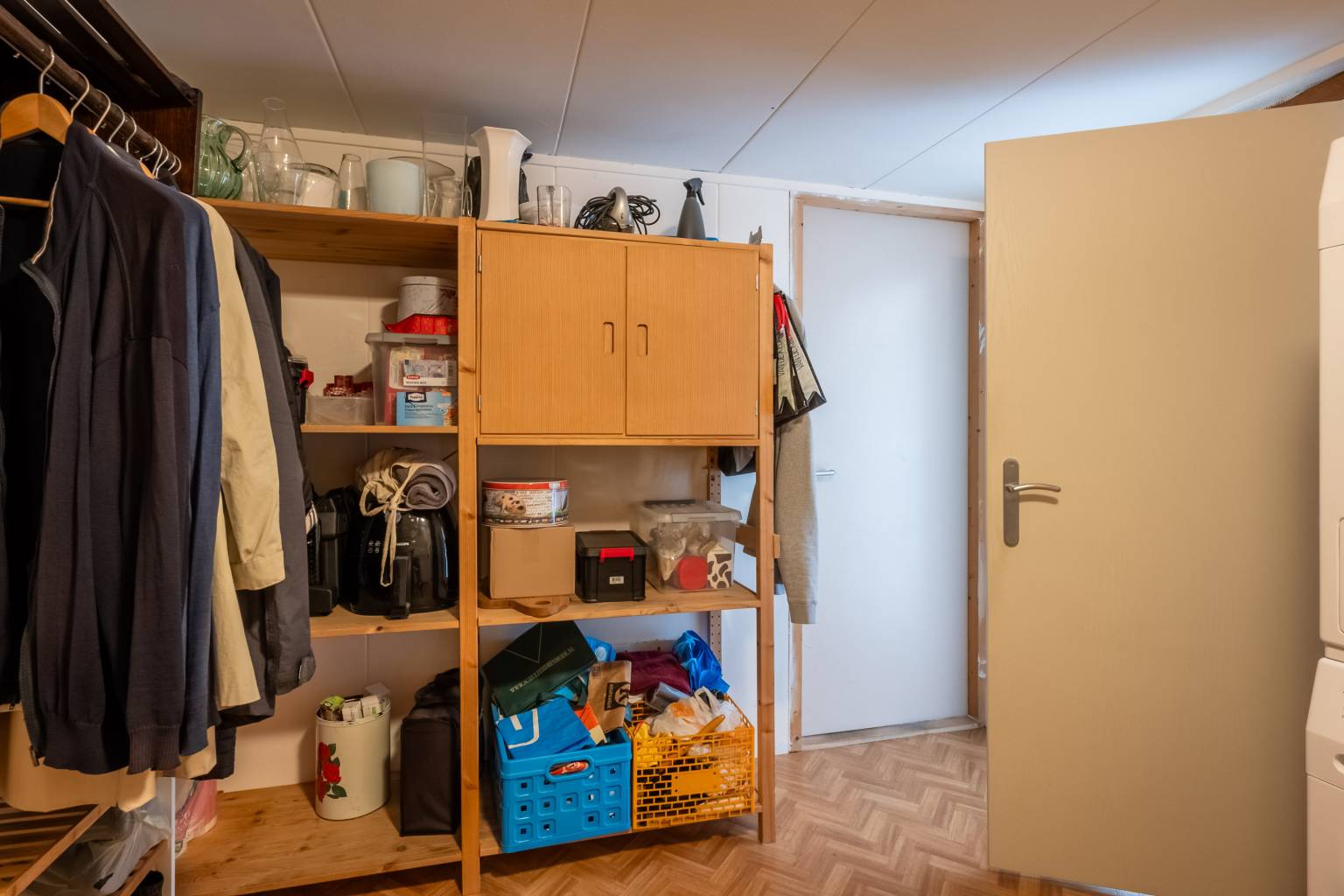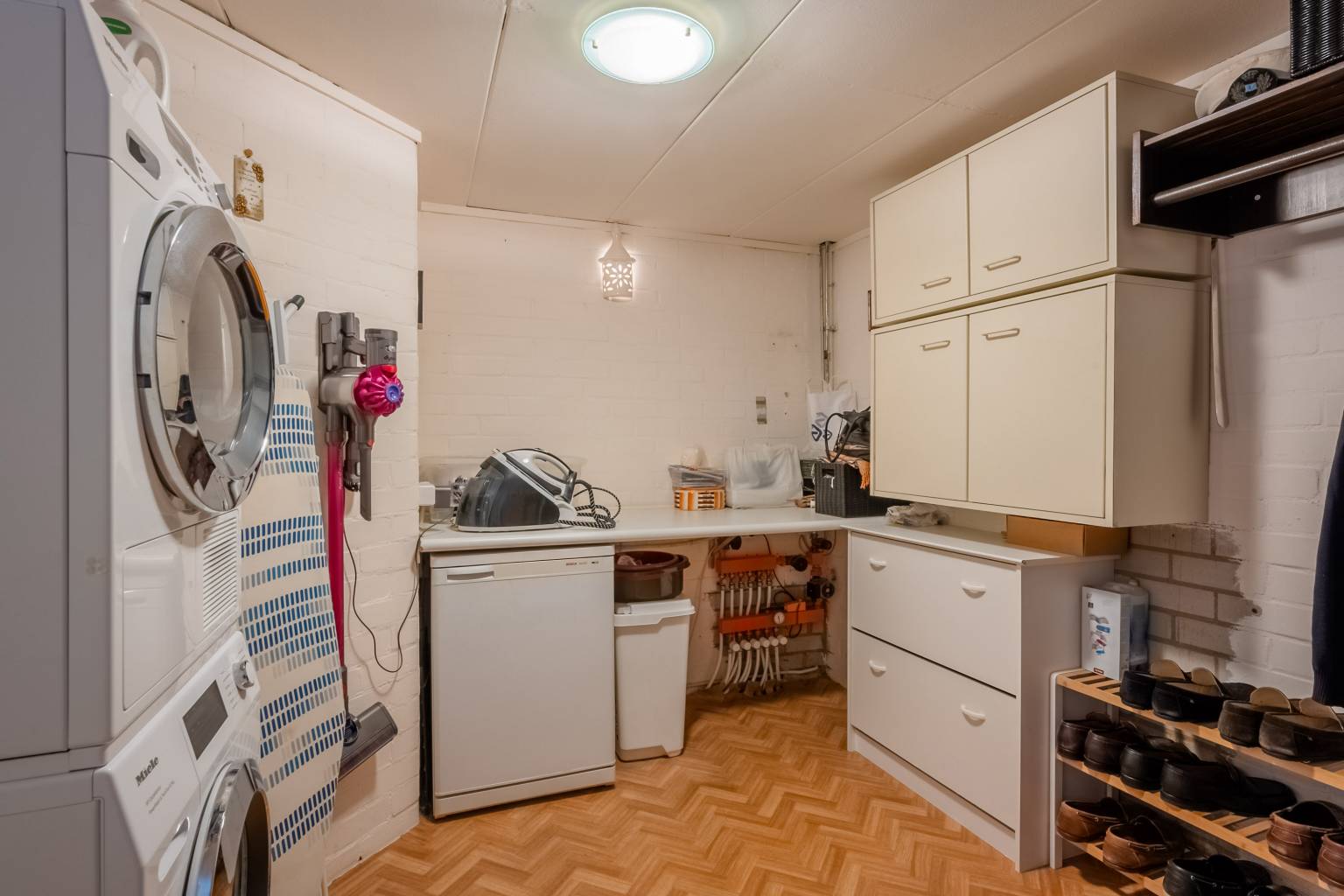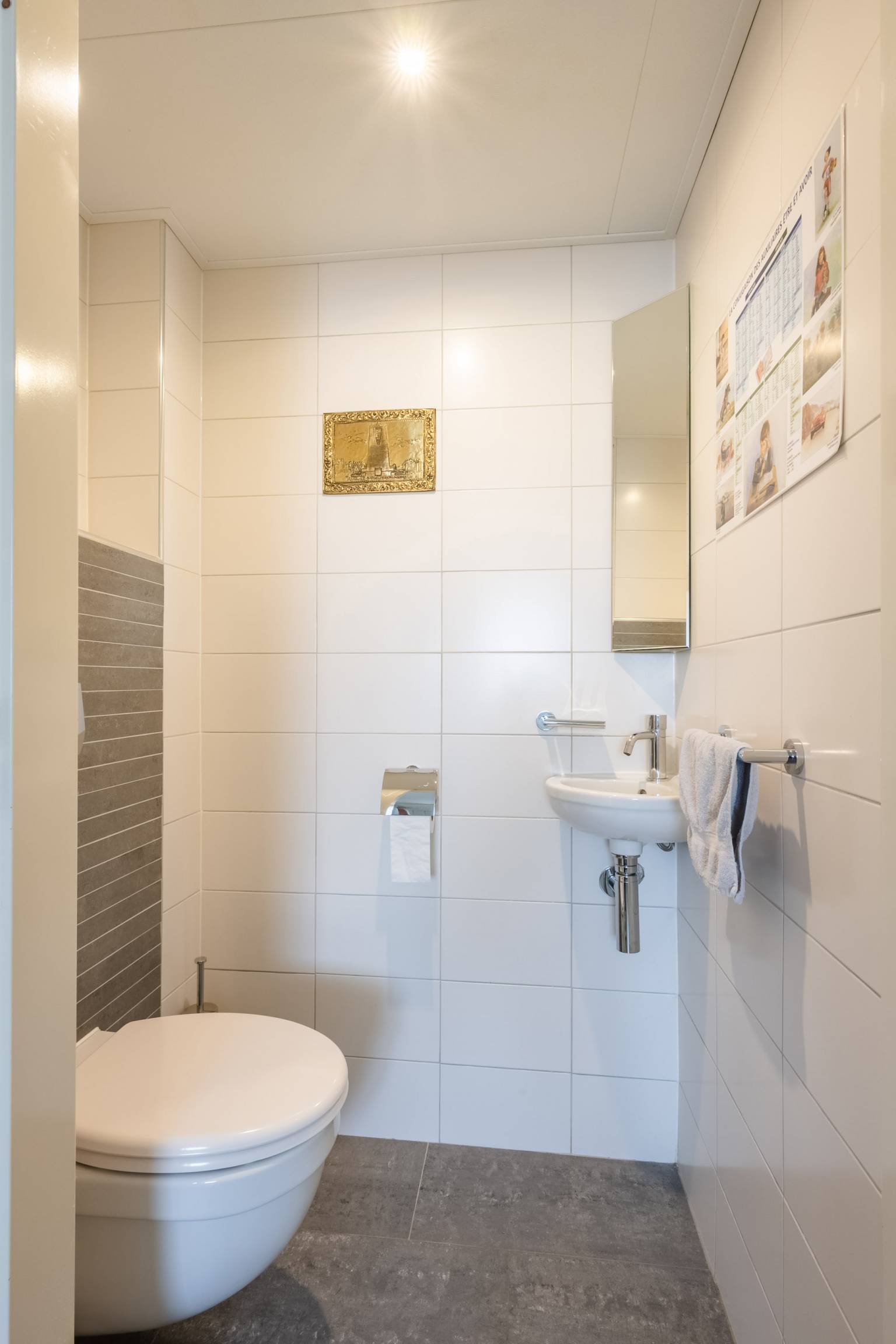 De verzorgde oprit, met plaats voor maar liefst twee à drie auto’s, geeft toegang tot de entreehal van de woning. De entreehal beschikt over de meterkast, de garderobe en de aparte toiletruimte. De aparte toiletruimte is volledig betegeld en voorzien van een zwevend toilet, fonteintje en mechanische ventilatie. Aan het einde van de entreehal is de living en de bijkeuken te betreden. Bij het betreden van de living ervaart u direct een ruimtelijk en open gevoel. De raampartijen aan weerszijde van de woning zorgen voor een stroom aan natuurlijk licht. Aan de voorzijde bevindt zich de U-vormige keuken met alle benodigde apparatuur zoals een inductie kookplaat, combi-oven, magnetron, vaatwasmachine, close-in boiler en een koelkast. Door middel van het raam kijkt u uit over de voortuin en de rustige en kindvriendelijke straat. Verder in de living vindt u de eethoek en de zithoek. Aan het einde van de eethoek is er toegang tot de zeer royale achtertuin. De zithoek is voorzien van een gashaard, wat niet alleen zorgt voor veel sfeer, maar ook voor warmte in de koudere maanden van het jaar. In de gehele woonkamer en keuken ligt vloerverwarming. Dan weer even terug naar de entreehal, want zoals eerder vermeld is ook de bijkeuken te bereiken vanuit hier. De bijkeuken beschikt over de aansluiting van de wasmachine en droger. Tevens is hier voldoende plaats om de was uit te hangen, op te vouwen of natuurlijk de wasmanden te stallen. Bovendien is de berging te betreden, die tevens bereikt kan worden vanuit de voortuin. De inpandige berging beschikt over bergruimte (die doorloopt boven de bijkeuken) en een kraan.