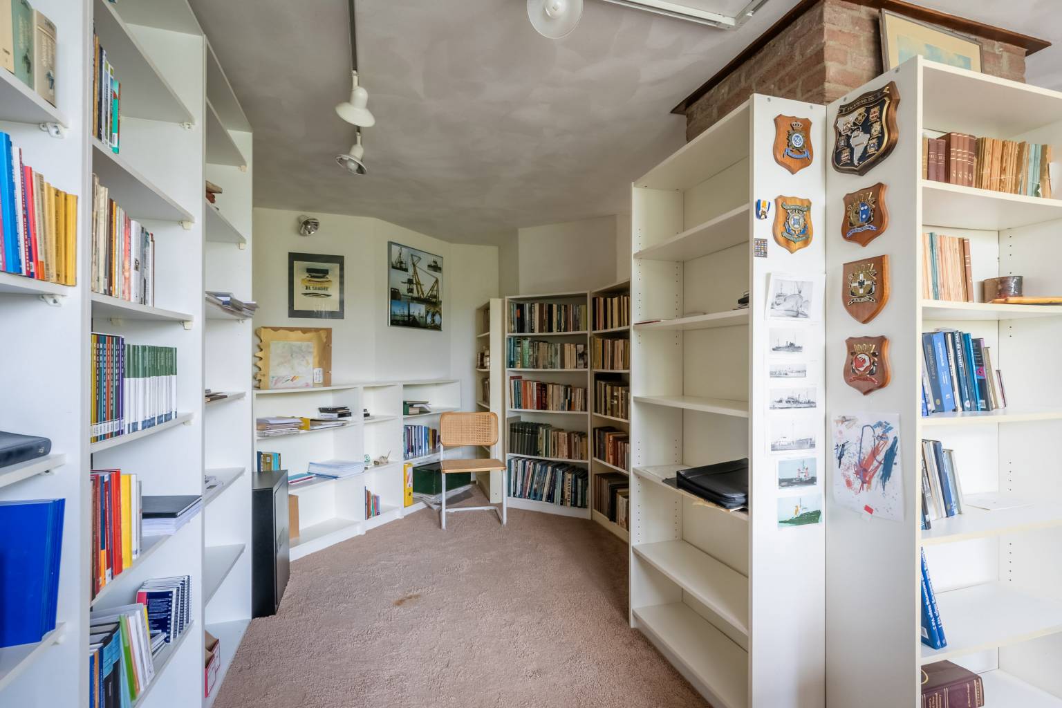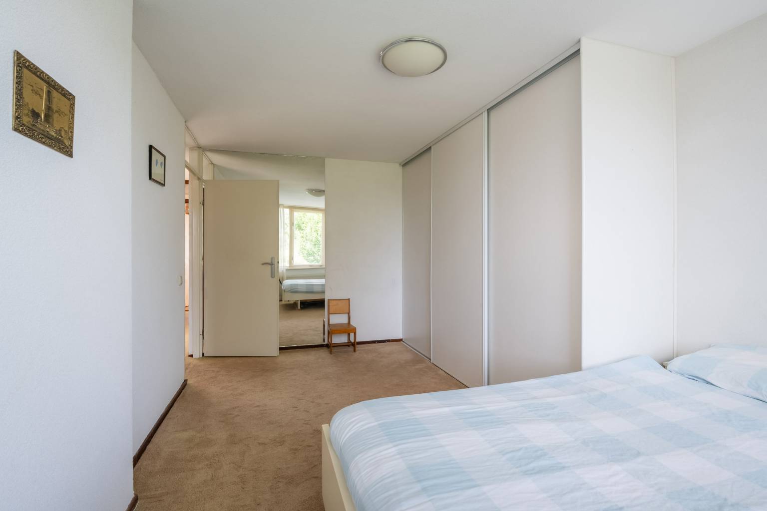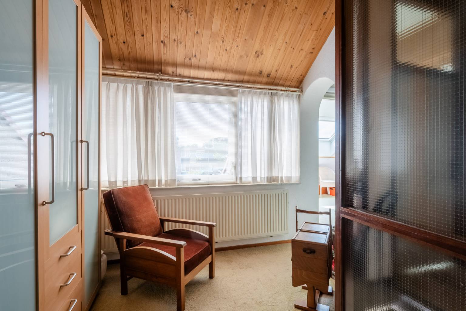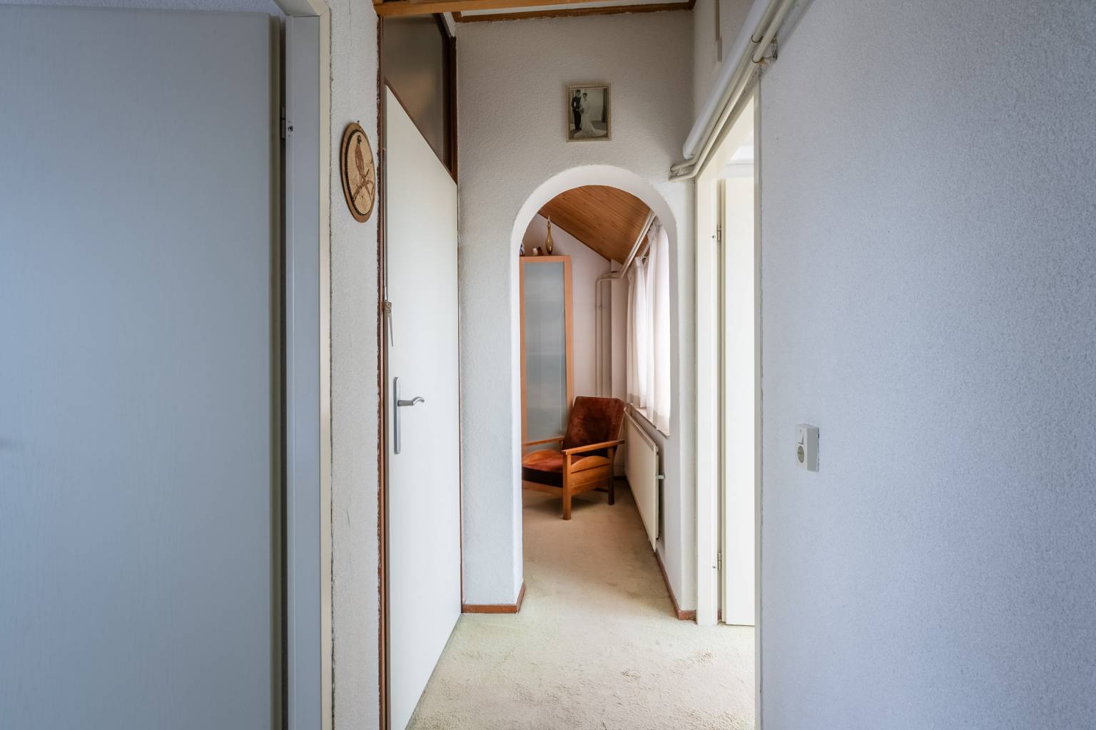 Het glas in de wanden op de tweede verdieping zorgt voor een fijne verbinding tussen de overloop en de kamer. Deze kamer is voorzien van knieschotten waar u veel spullen achter kunt opbergen. Daarnaast heeft de tweede verdieping nog twee slaapkamers en een vaste kast met de opstelling van de cv-ketel en de warmtepomp. Boven de hal naar deze slaapkamer is er nog een vliering met extra bergruimte. De slaapkamers bevinden zich aan weerszijde van elkaar en beschikken allebei over VELUX-dakramen.