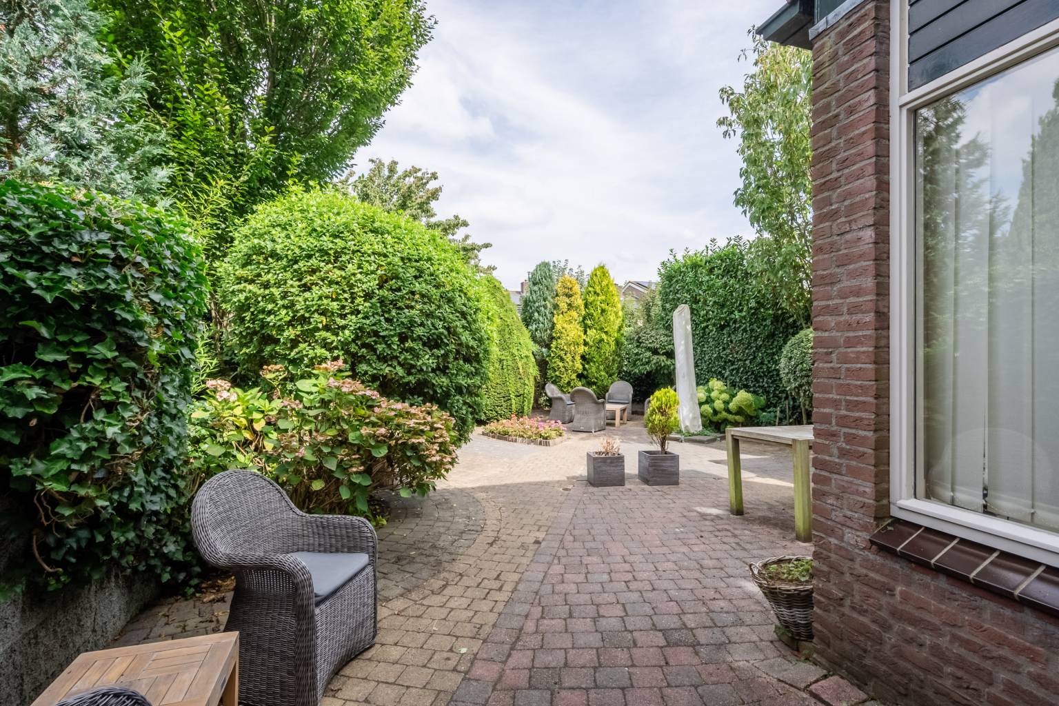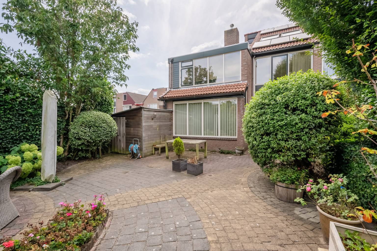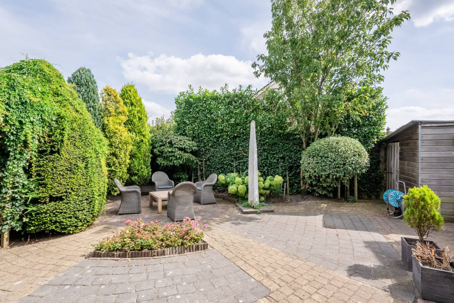 Wat een fenomenale achtertuin! Een tuin van dit formaat komt maar zelden voor. In de achtertuin is de perfecte verhouding tussen tegels en groen waardoor u optimaal gebruik kunt maken van de ruimte en toch kunt genieten van de groene omgeving. In de achtertuin is een buitenkraan en er is toegang tot de schuur. Deze schuur heeft een poort naar de zijkant van de woning waardoor u gemakkelijk uw fietsen op eigen terrein kunt plaatsen. De schuur loopt over de gehele lengte en dus bijna helemaal door tot aan het begin van de woning. Ook hier is een deur naar de zijkant.