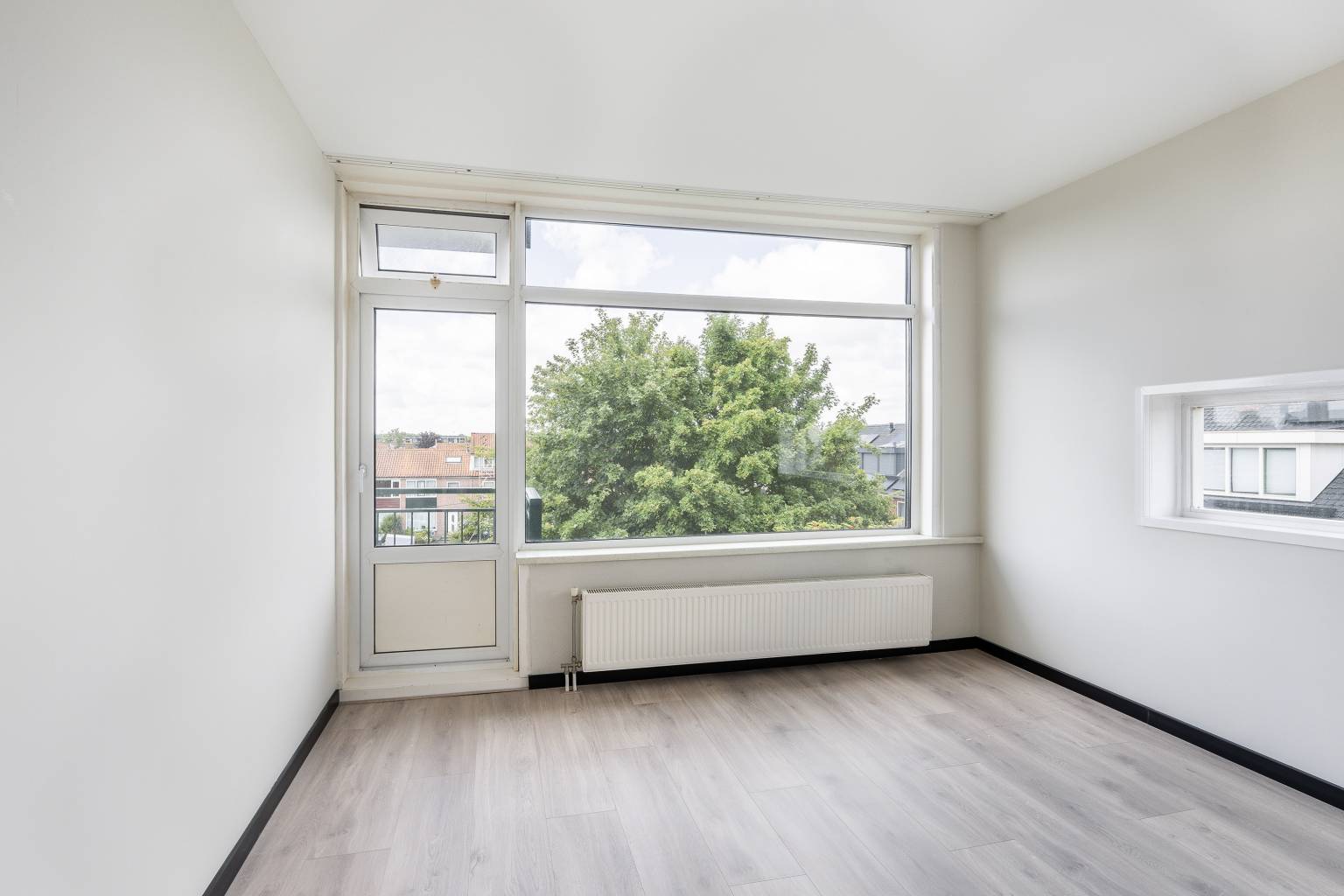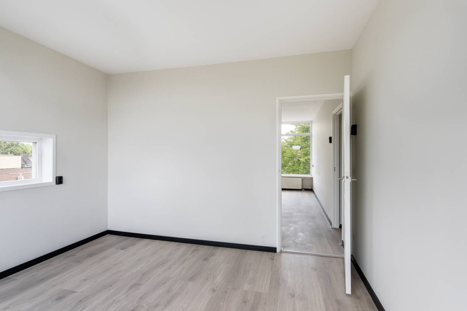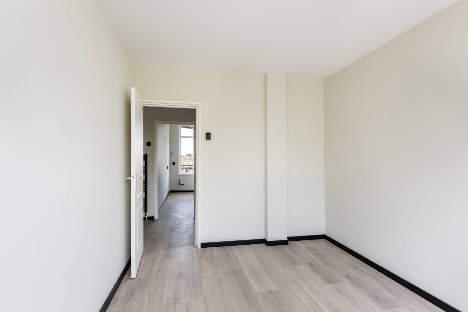 De tweede slaapkamer is gelegen aan de achterzijde en heeft naast glad afgewerkte wanden ook een zijraam en toegang tot het balkon.