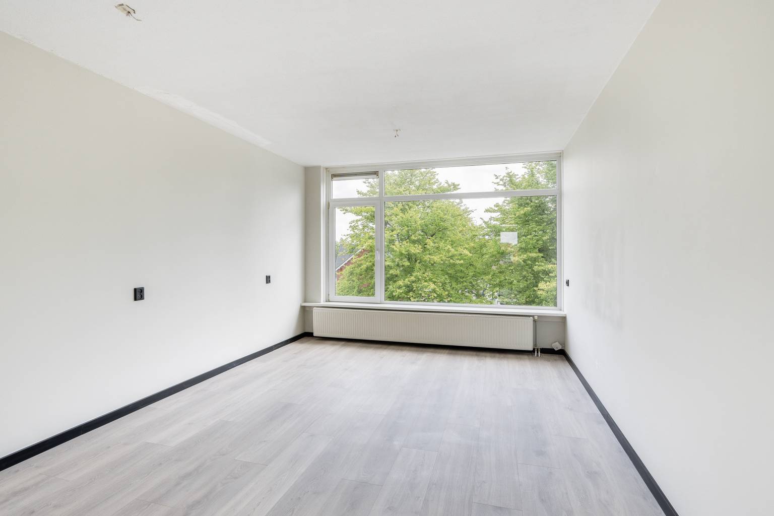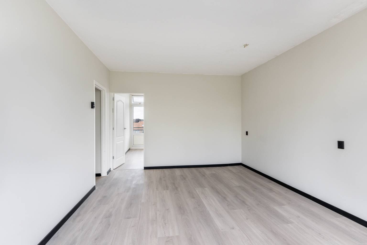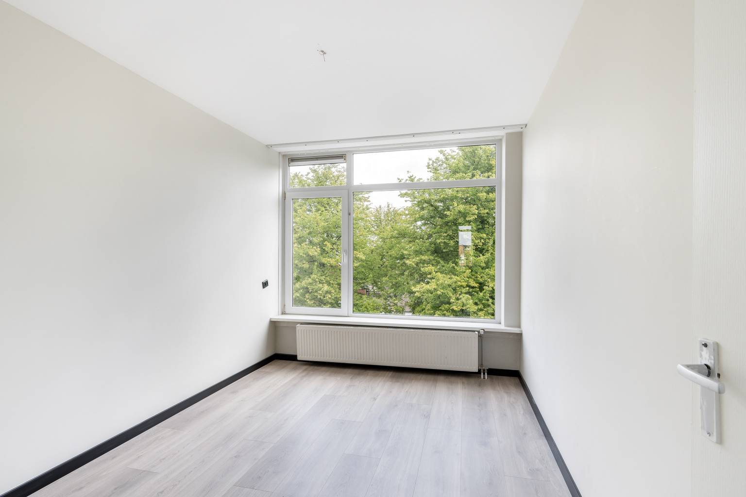 De tweede slaapkamer is gelegen aan de achterzijde en heeft naast glad afgewerkte wanden ook een zijraam en toegang tot het balkon.