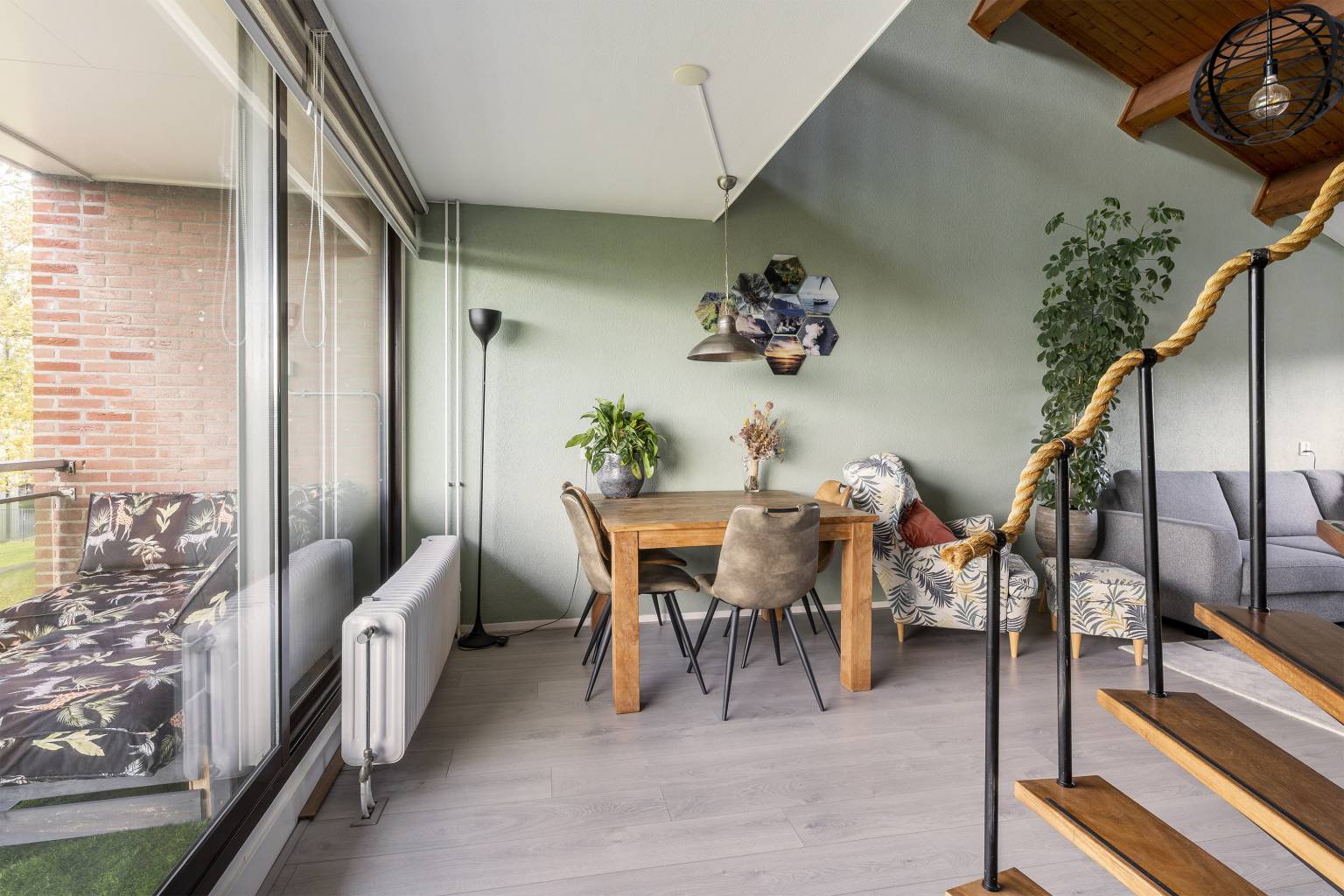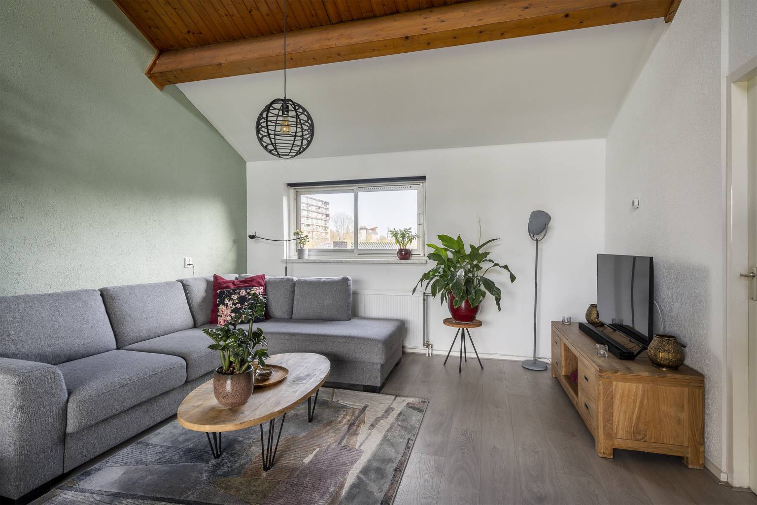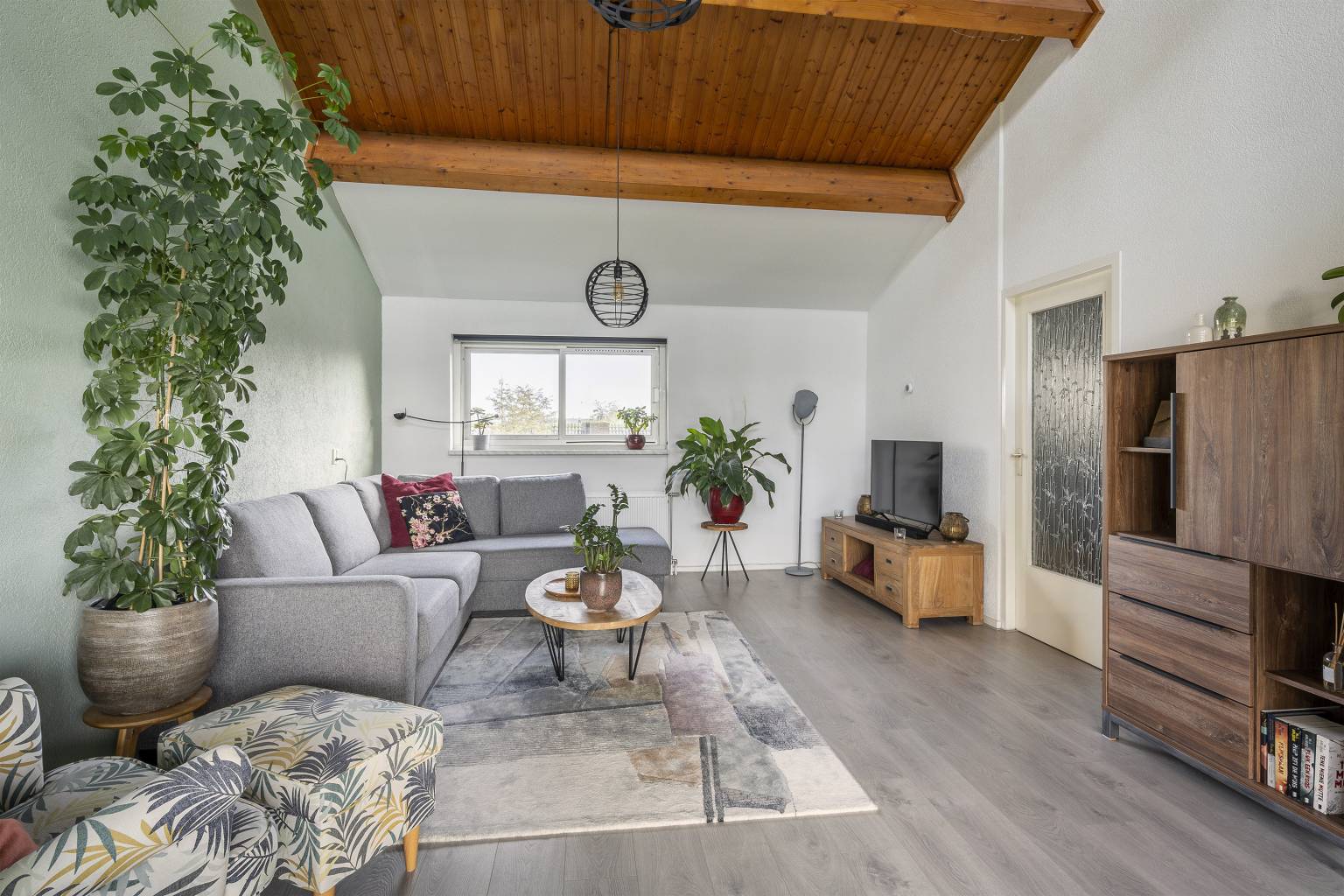 De entreehal beschikt over een garderobe, meterkast, vaste kast met cv-opstelling en aparte toiletruimte. De aparte toiletruimte is grotendeels betegeld en voorzien van een toilet en fonteintje. In dezelfde stijl als de aparte toiletruimte is de badkamer afgewerkt. De badkamer beschikt over een douchebad, wastafel en een wasmachineaansluiting. Aan het einde van de entreehal is er toegang tot de woonkamer. Bij het betreden van de woonkamer komt u terecht in een fijne en lichte ruimte. Door de vide oogt het ruimtelijk en kunt u optimaal genieten van ultiem woongenot. De woonkamer beschikt over een nette laminaat vloer en biedt toegang tot de keuken en het balkon. De L-vormige keuken is voorzien van voldoende kastruimte en benodigde keukenapparatuur zoals een 4-pits gaskookplaat, vaatwasmachine, combi-oven en koelkast met vriesvak.