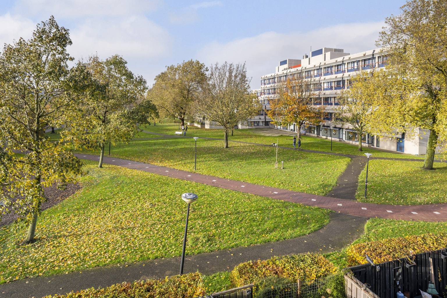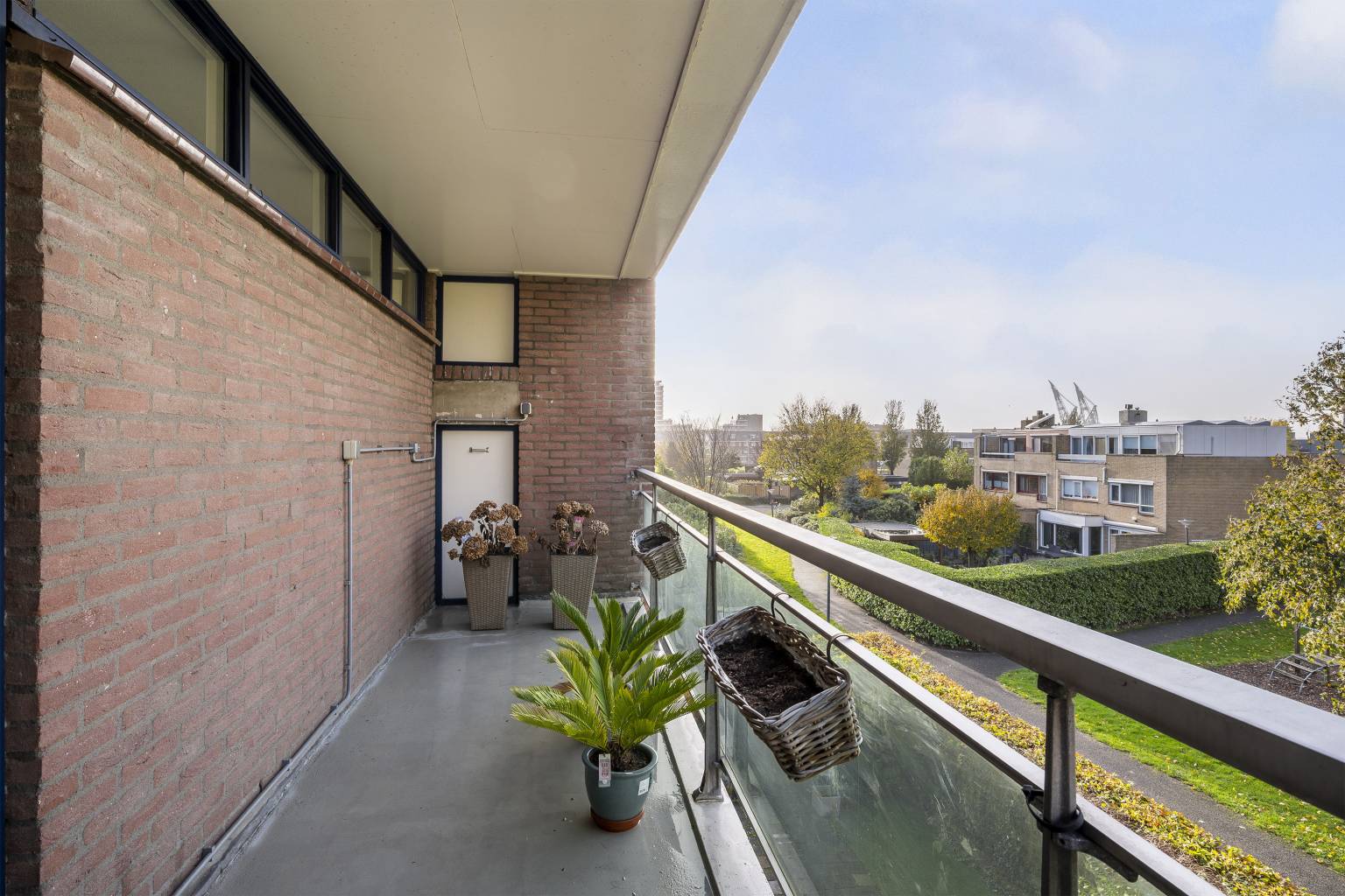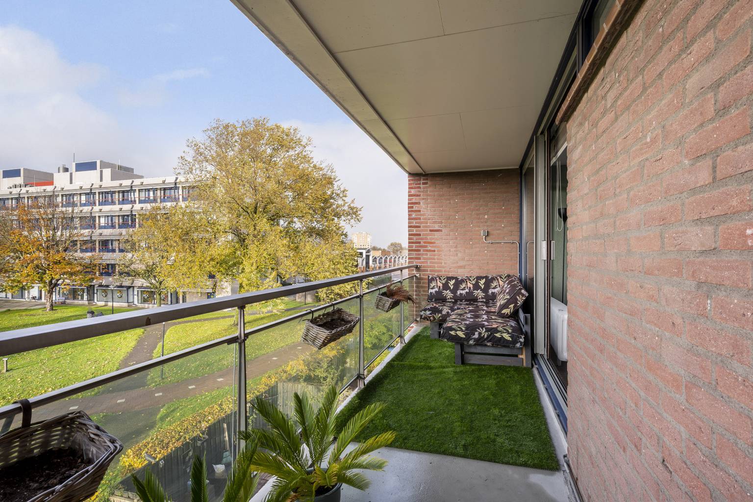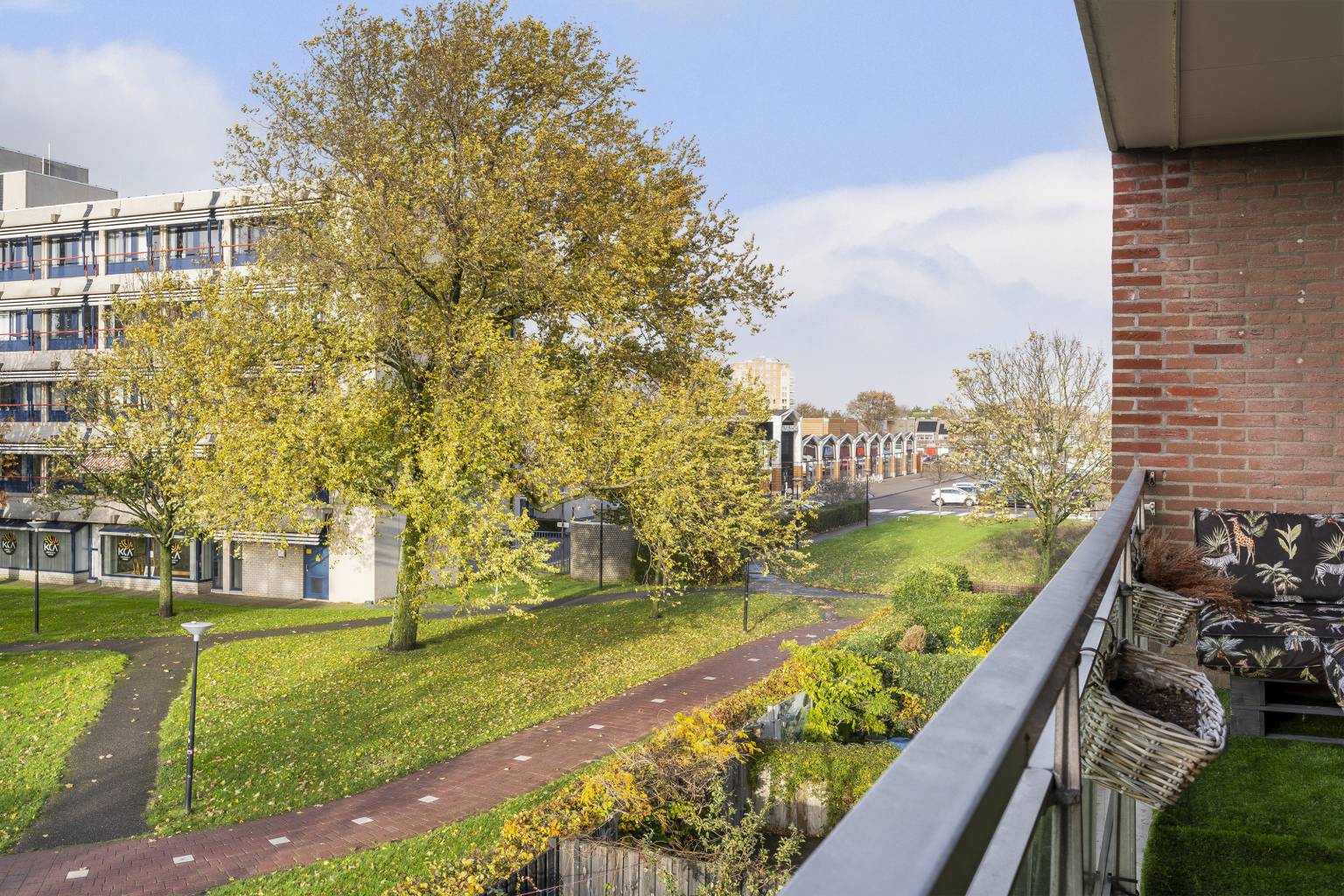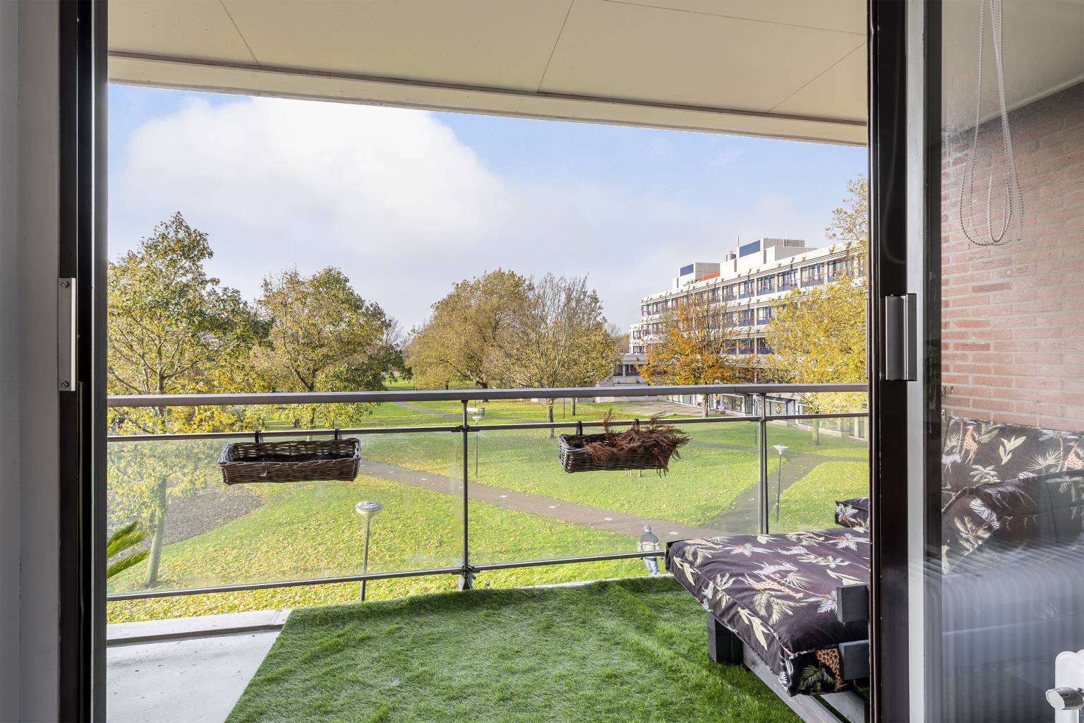 Het balkon loopt over de gehele breedte van het appartement en is dus ruim te noemen. Door het plaatsen van een zithoek kunt u optimaal genieten van de buitenlucht. Het balkon is te betreden vanuit de woonkamer, door middel van een schuifpui en is gelegen op het noordwesten waardoor u de middag en avond kunt genieten van de zon. Vanaf het balkon heeft u mooi vrij zicht op het groene park.