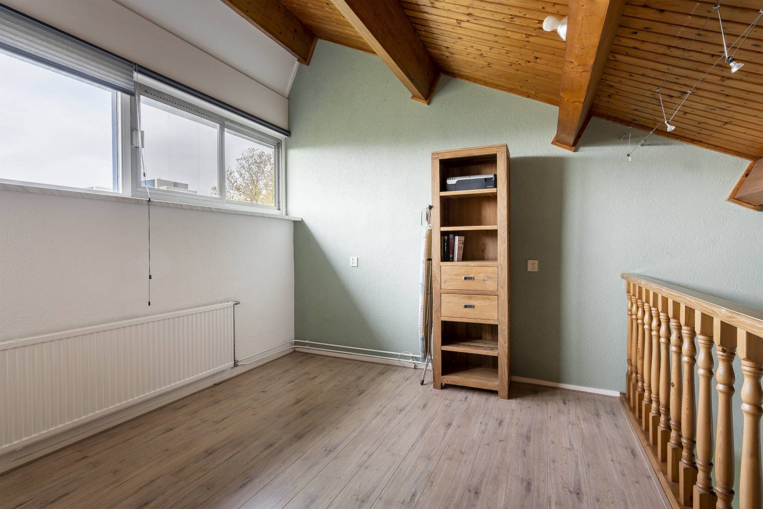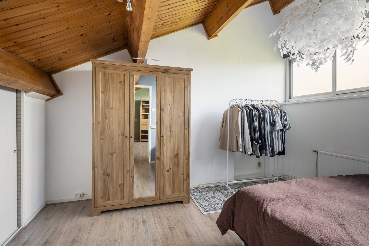 Door de wenteltrap is de ruimte met aangrenzende slaapkamer te betreden. De open ruimte kan natuurlijk geheel naar eigen wens worden ingericht en kan goed dienen als bijvoorbeeld werkkamer of extra slaapruimte. Door de vide staat de woonkamer in verbinding met deze ruimte. Vanuit hier is tevens de slaapkamer te bereiken. De slaapkamer beschikt over een grote bergruimte.