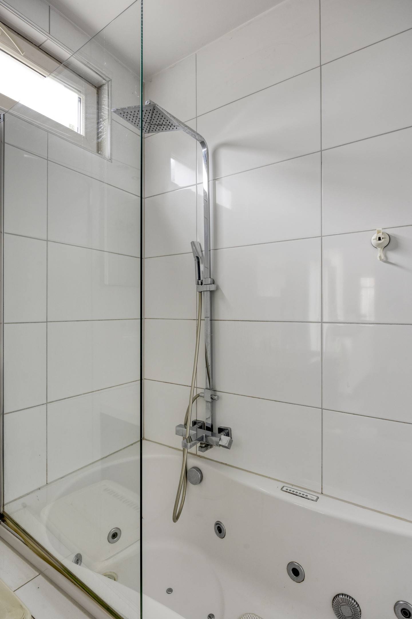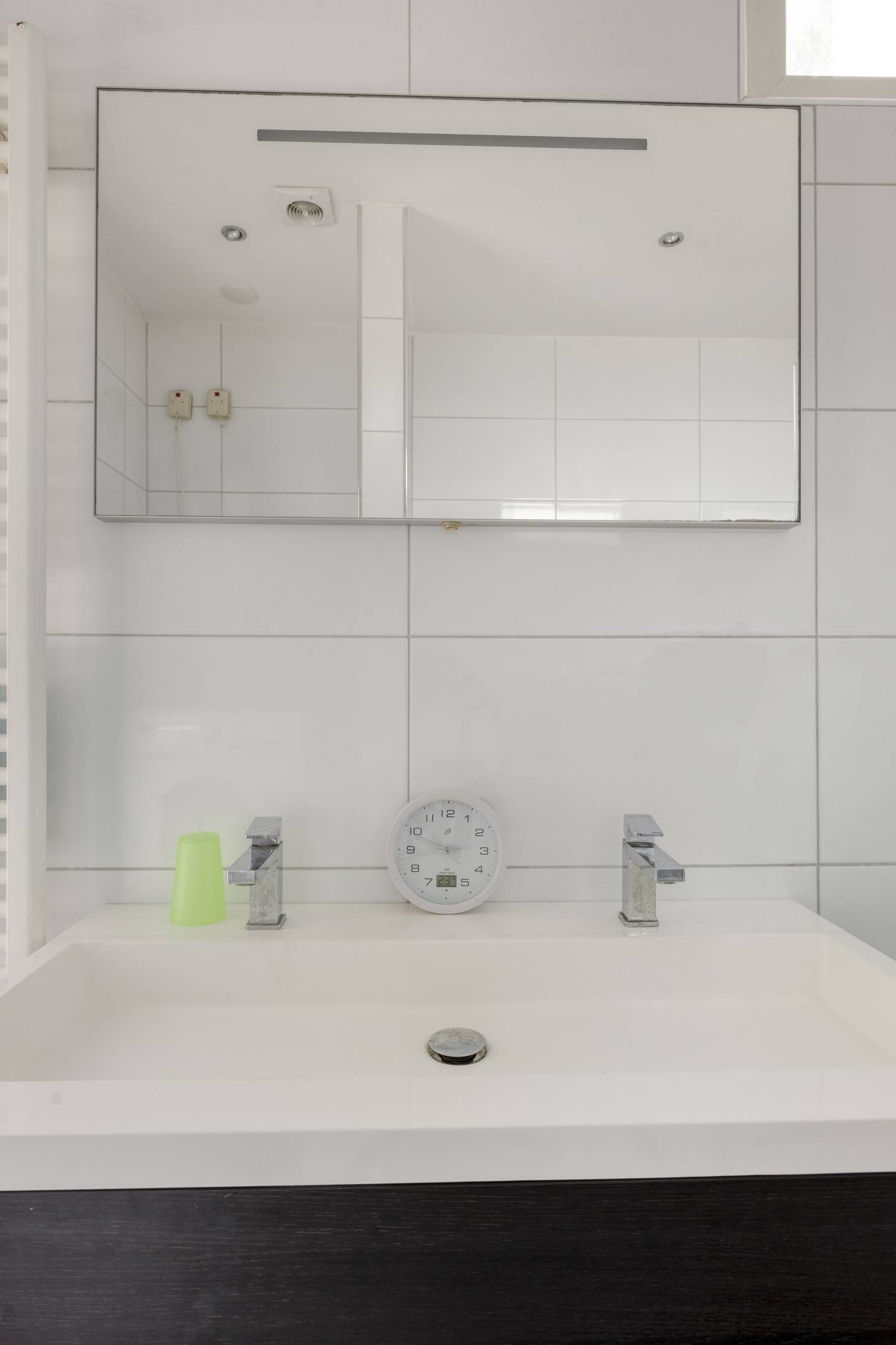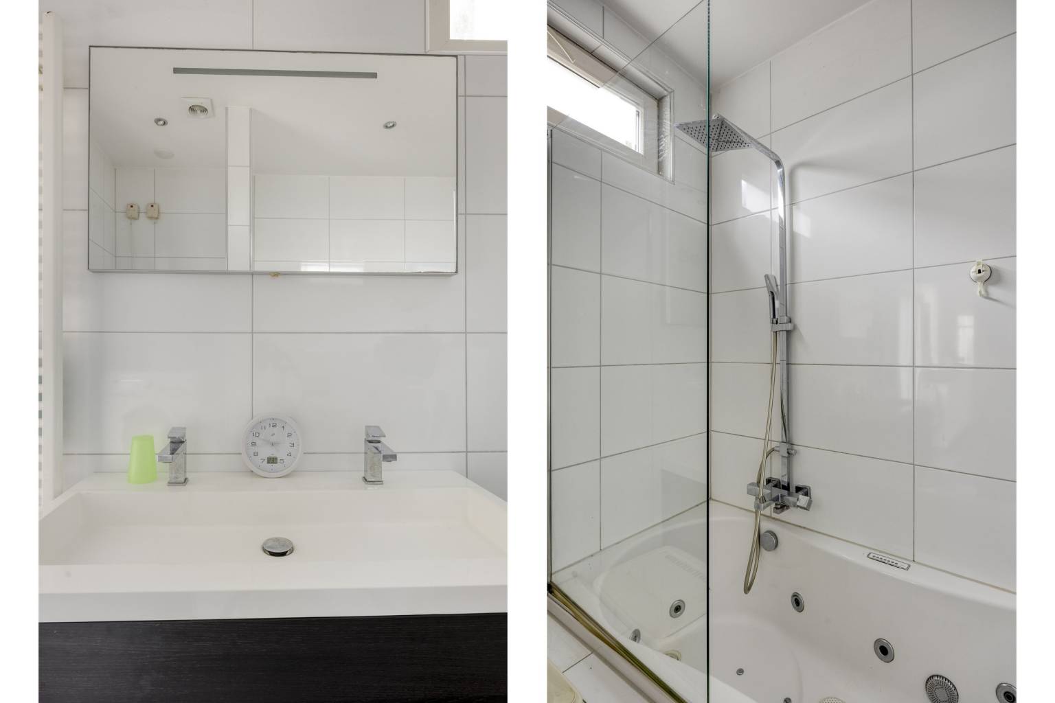 Vanuit de keuken bereik je de moderne badkamer, voorzien van een whirlpool met douchemogelijkheid, een wastafelmeubel, toilet en de aansluitingen voor wasapparatuur.
