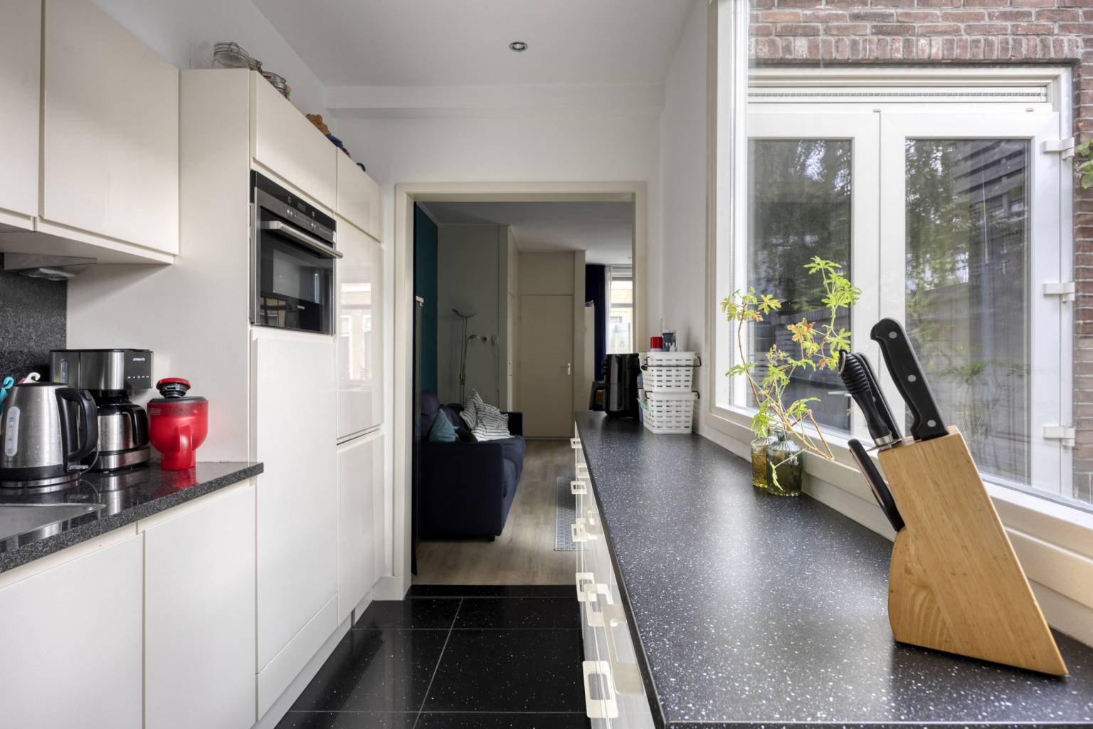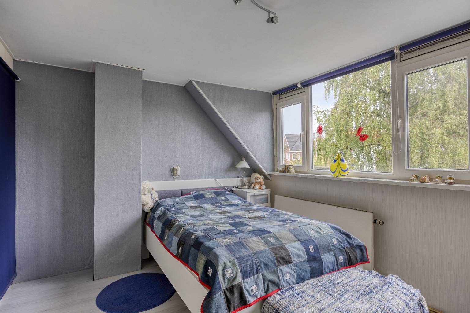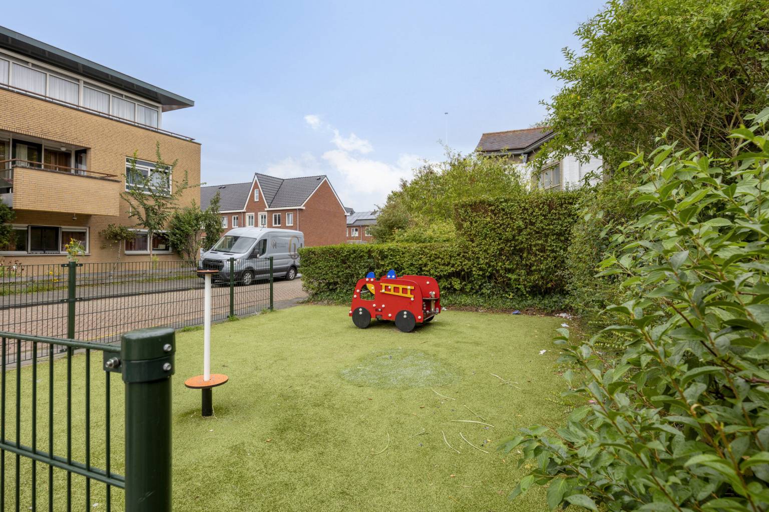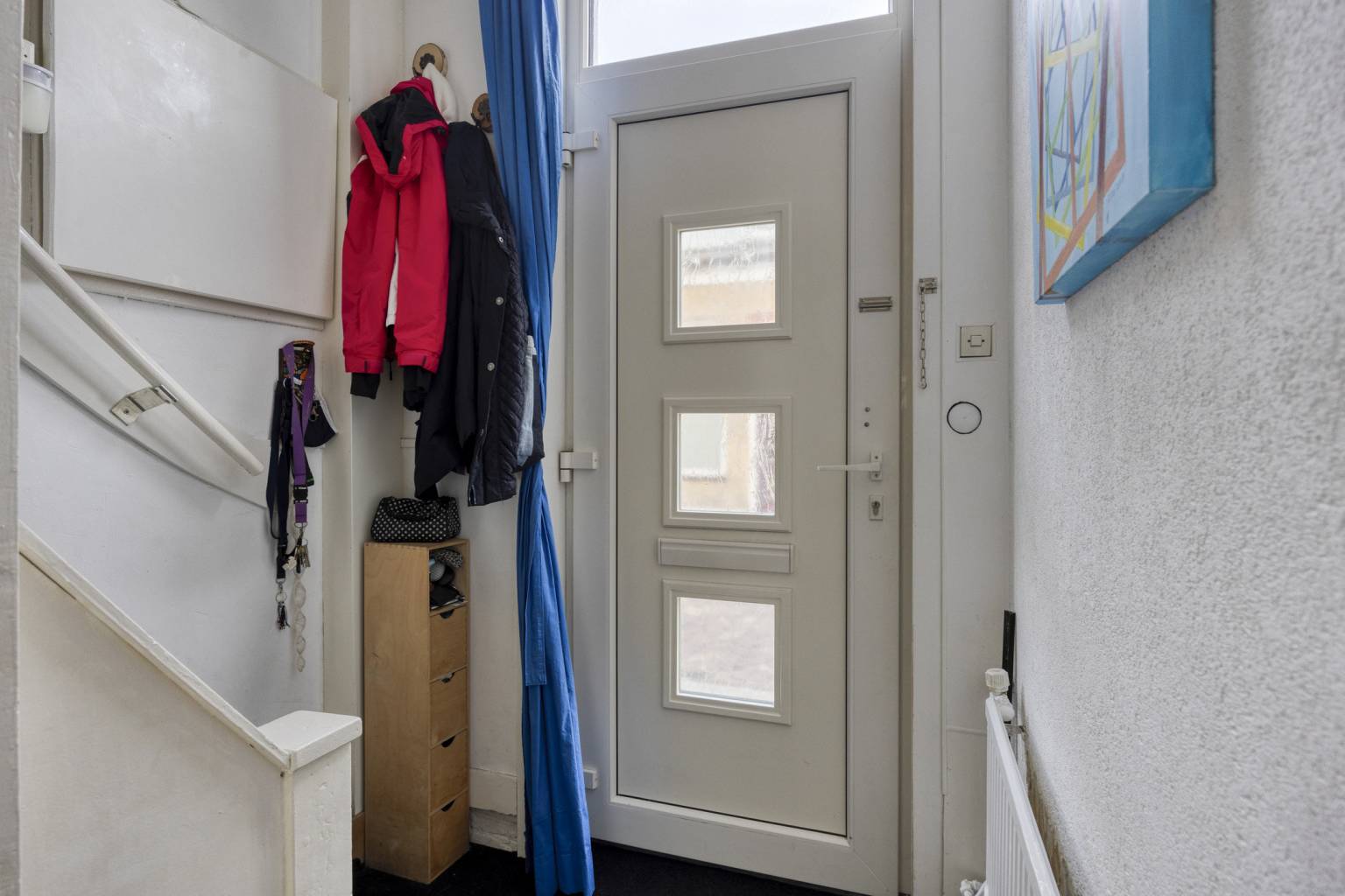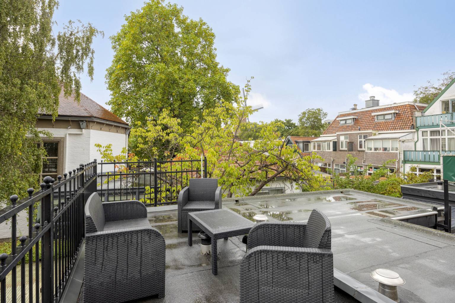 De woning beschikt over twee buitenruimtes: een stadse patio en een gezellig dakterras. De patio aan de achterzijde is compleet in het hard aangelegd en biedt toegang tot de berging met achterom. Het is een fijne plek voor een compacte zithoek of een groene aankleding met plantenbakken. Het dakterras is echter de kers op de taart: ruim opgezet, zonnig en met uitzicht over de omgeving. Hier creëer je eenvoudig een relaxhoek om te ontsnappen aan de drukte van de dag.