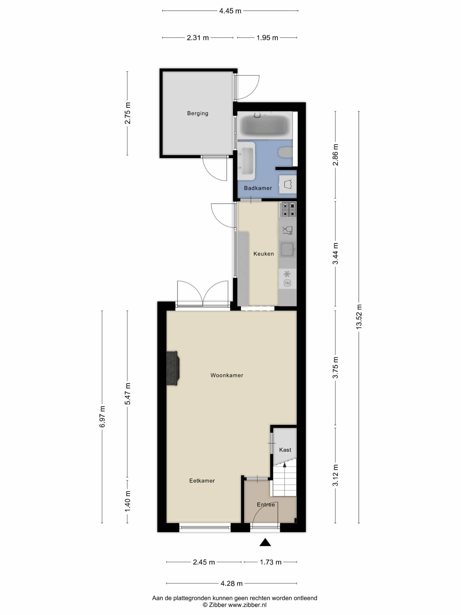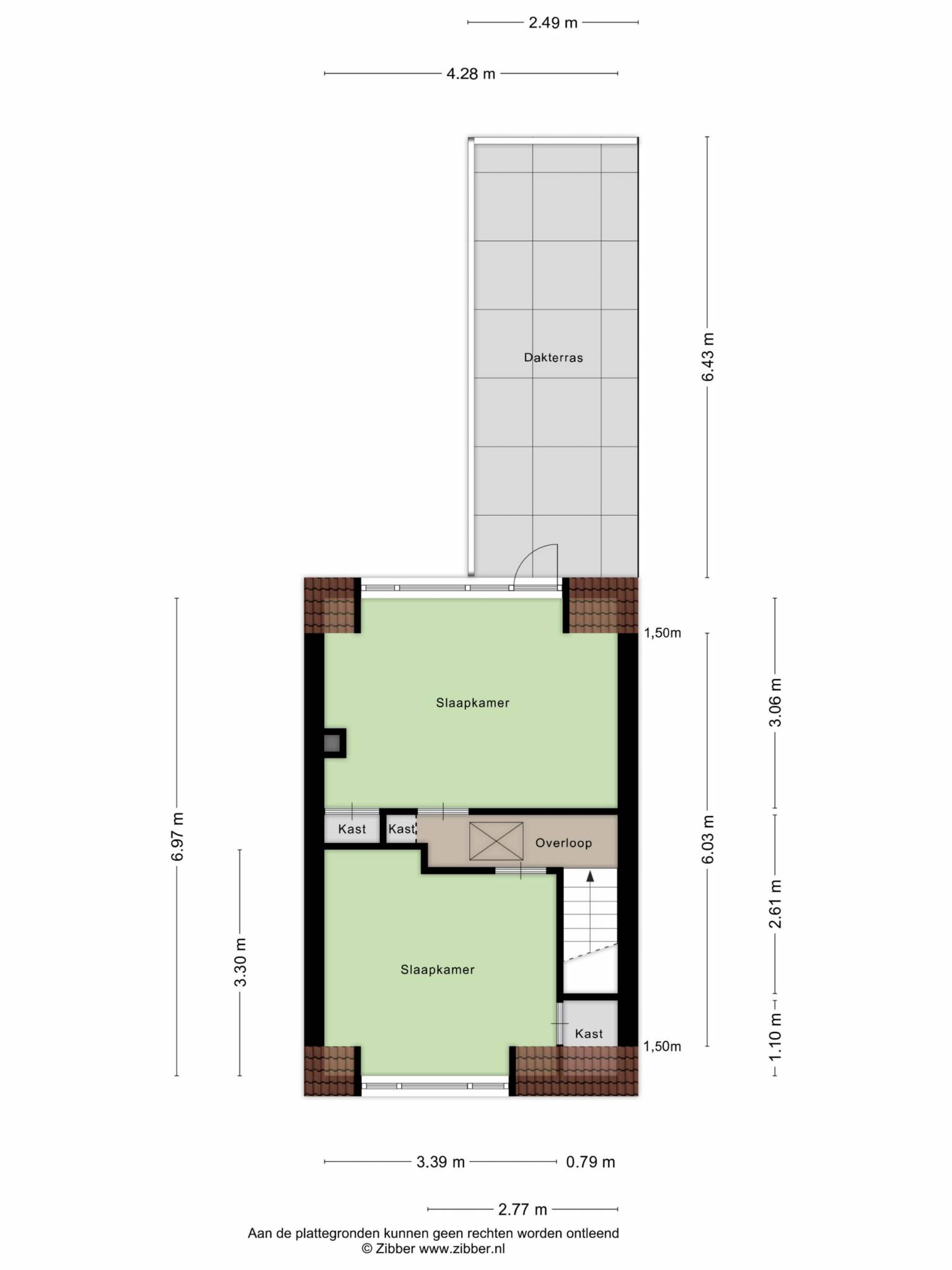 - 11 m² (5,15m Diep / 2,21m Breed)