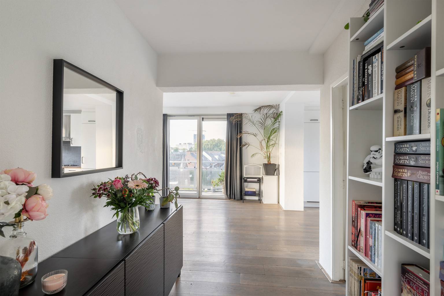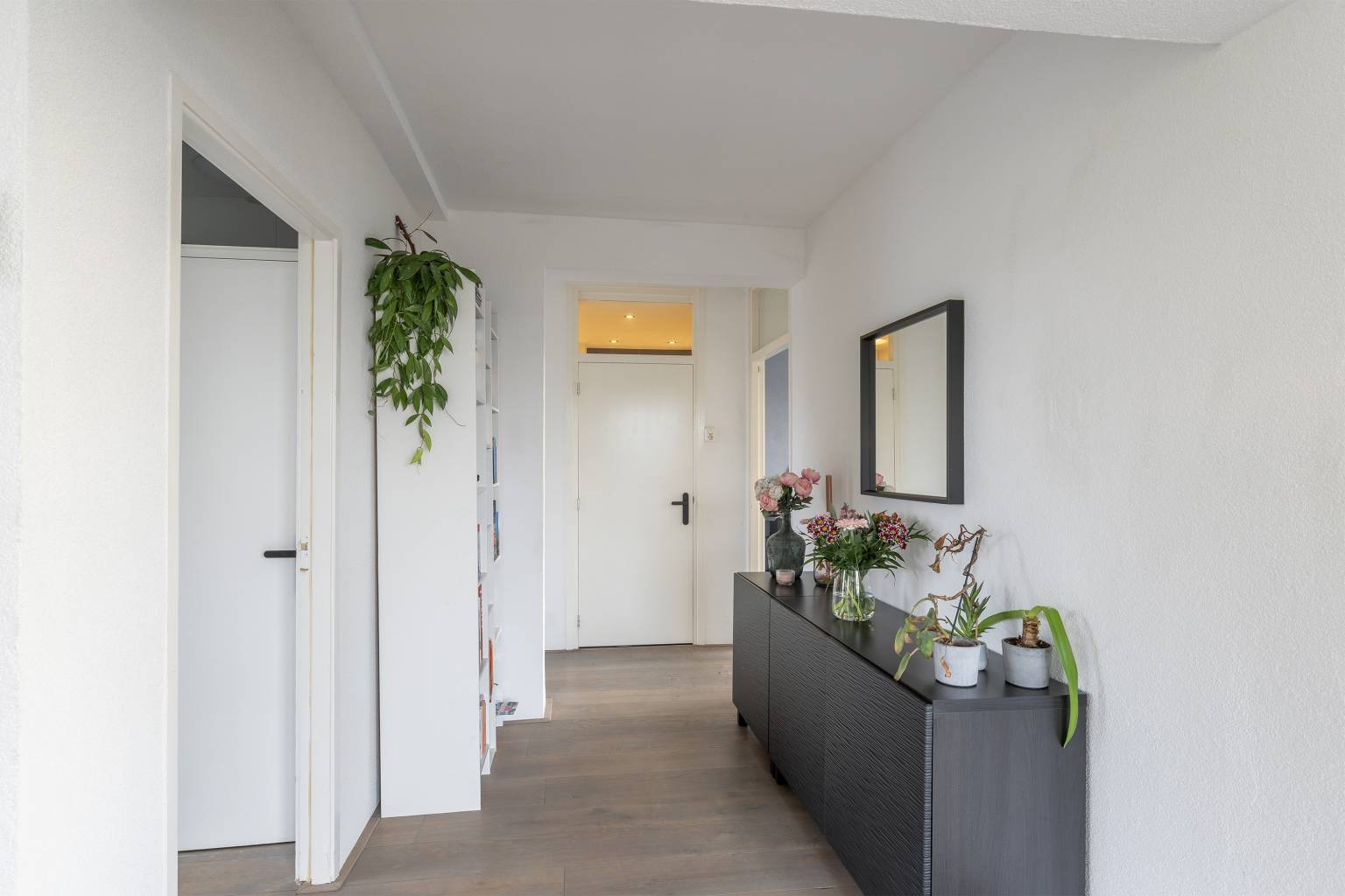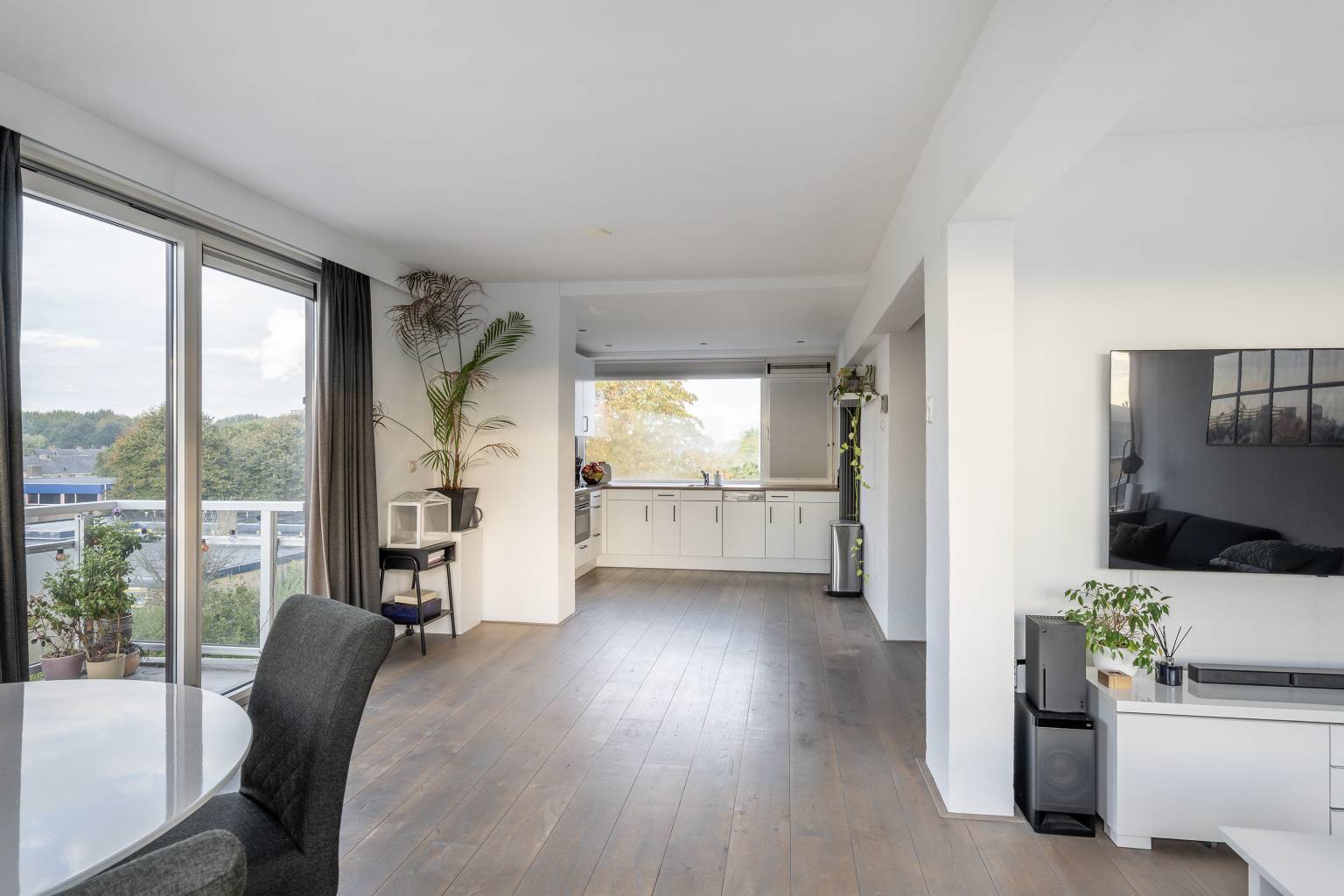 Welkom in dit lichte en vrolijke appartement waar comfort, rust en gemak samenkomen! Dit fijne 3-kamerappartement ligt op de bovenste woonlaag op een hoek, waardoor je geniet van extra privacy, veel daglicht en een vrij uitzicht over het omliggende groen. De rustige woonomgeving ademt ruimte en ontspanning, met volop mogelijkheden om te wandelen of even tot rust te komen in het nabijgelegen park. Alle dagelijkse voorzieningen liggen binnen handbereik: winkels, scholen, het openbaar vervoer en de uitvalswegen zijn gemakkelijk te bereiken, terwijl je de auto gewoon gratis voor de deur parkeert. Binnen valt direct de verzorgde afwerking op: spachtelputz wanden, een houten vloer die drempelloos doorloopt naar de woonkamer en een plafond met inbouwspots zorgen voor een warme en eigentijdse sfeer. De doorgebroken woonkamer biedt plek voor een gezellige zit- en eethoek en grenst aan het zonnige balkon met glazen balustrade. De open keuken is modern en praktisch ingericht, met diverse inbouwapparatuur en een lichte uitstraling die perfect past bij het geheel. Met twee comfortabele slaapkamers, een nette badkamer met inloopdouche, elektrische zonwering aan de achterzijde en een recent geplaatste schuifpui (2024) is dit een woning die zo te betrekken is. Bovendien beschik je over een eigen berging in de onderbouw, zonnepanelen via de VvE en een actieve vereniging die het complex goed onderhoudt.