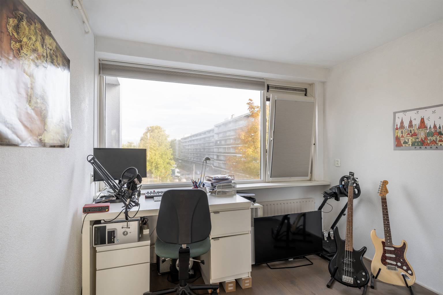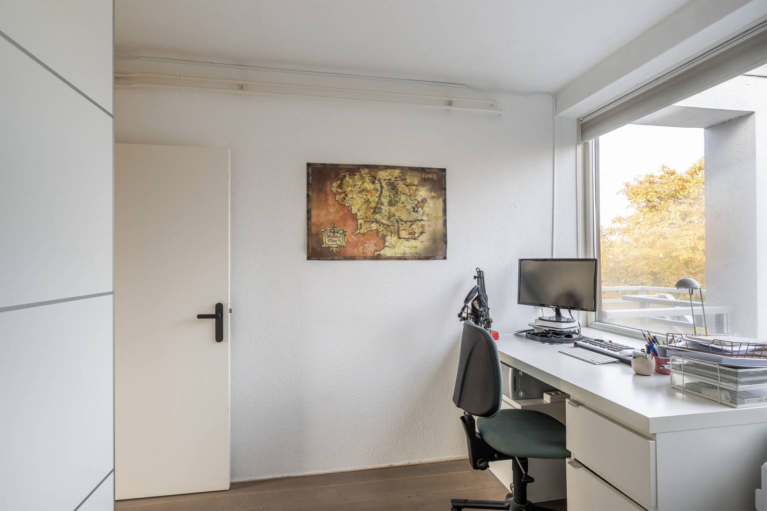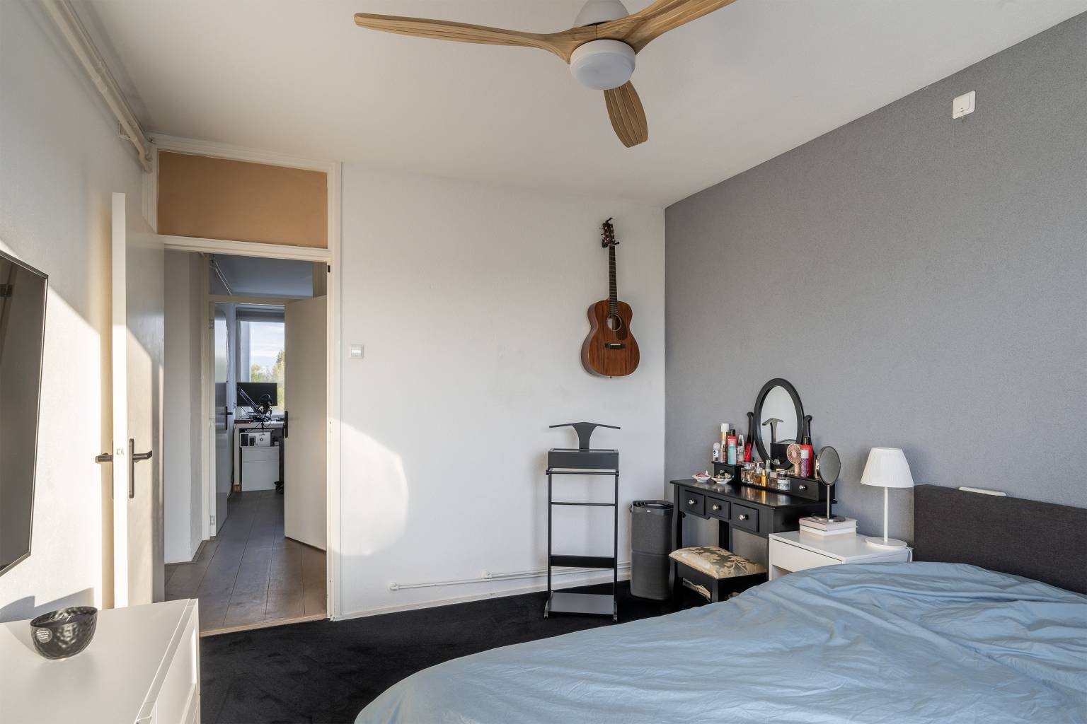 Welkom in dit lichte en vrolijke appartement waar comfort, rust en gemak samenkomen! Dit fijne 3-kamerappartement ligt op de bovenste woonlaag op een hoek, waardoor je geniet van extra privacy, veel daglicht en een vrij uitzicht over het omliggende groen. De rustige woonomgeving ademt ruimte en ontspanning, met volop mogelijkheden om te wandelen of even tot rust te komen in het nabijgelegen park. Alle dagelijkse voorzieningen liggen binnen handbereik: winkels, scholen, het openbaar vervoer en de uitvalswegen zijn gemakkelijk te bereiken, terwijl je de auto gewoon gratis voor de deur parkeert. Binnen valt direct de verzorgde afwerking op: spachtelputz wanden, een houten vloer die drempelloos doorloopt naar de woonkamer en een plafond met inbouwspots zorgen voor een warme en eigentijdse sfeer. De doorgebroken woonkamer biedt plek voor een gezellige zit- en eethoek en grenst aan het zonnige balkon met glazen balustrade. De open keuken is modern en praktisch ingericht, met diverse inbouwapparatuur en een lichte uitstraling die perfect past bij het geheel. Met twee comfortabele slaapkamers, een nette badkamer met inloopdouche, elektrische zonwering aan de achterzijde en een recent geplaatste schuifpui (2024) is dit een woning die zo te betrekken is. Bovendien beschik je over een eigen berging in de onderbouw, zonnepanelen via de VvE en een actieve vereniging die het complex goed onderhoudt.