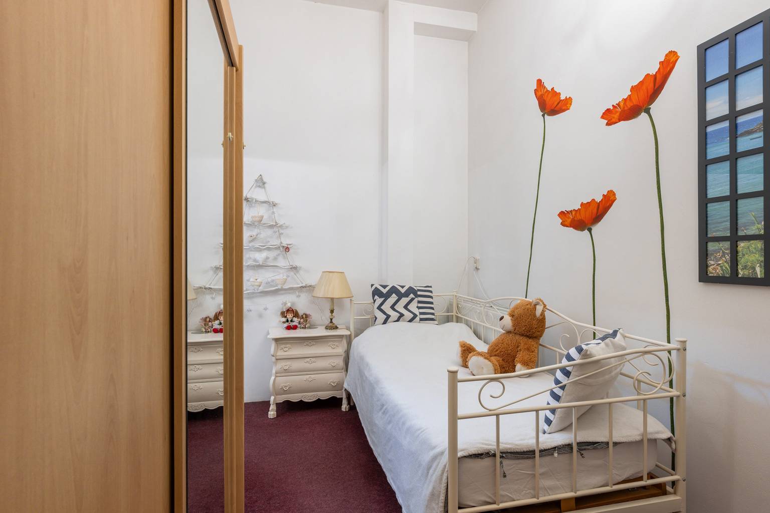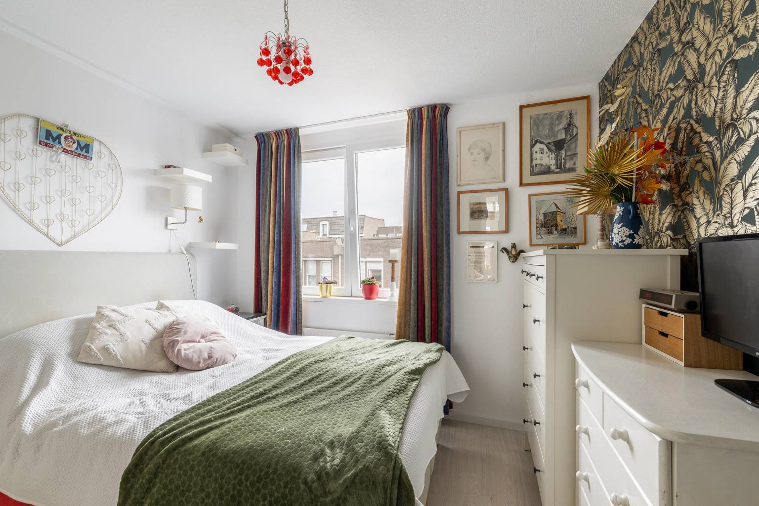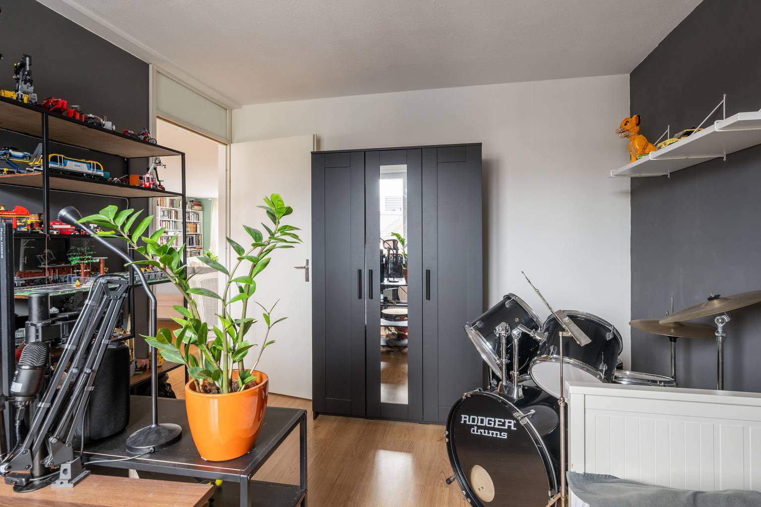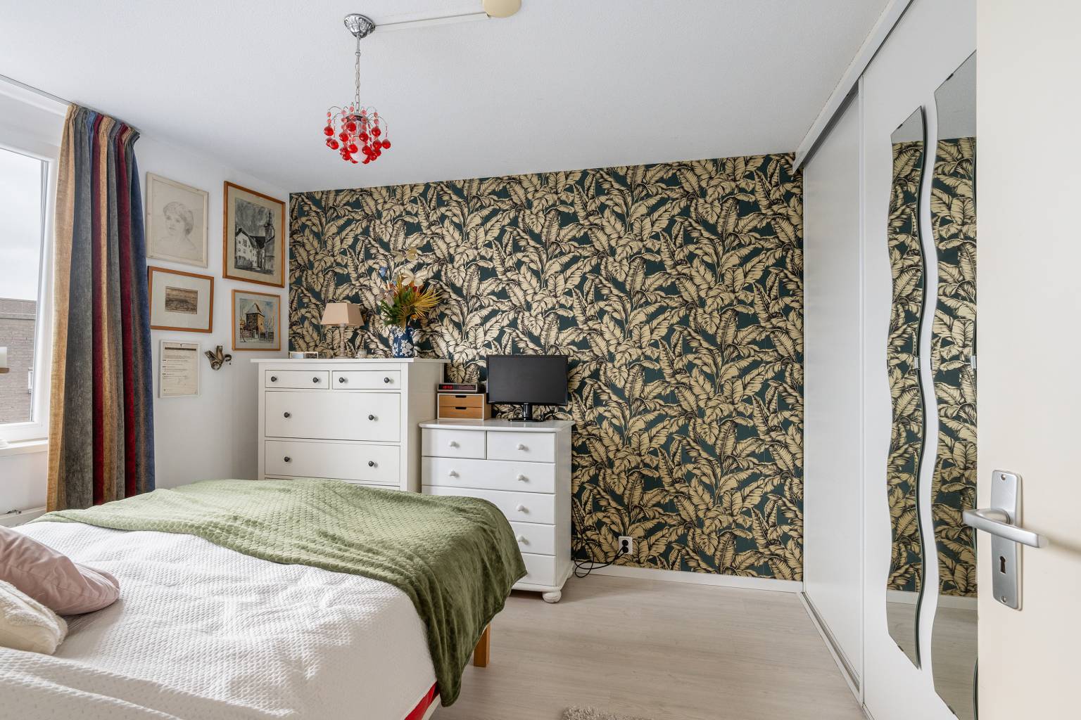 De eerste slaapkamer is gelegen aan de voorzijde beschikt over een grote vaste kast met schuifdeuren. Op de vloer ligt laminaat en de wanden zijn deels behangen en deels gestuukt. De tweede slaapkamer is gelegen aan de achterzijde en heeft aan de gevel een handbedienbaar uitvalscherm. Op de vloer ligt laminaat en de wanden zijn gestuukt.
