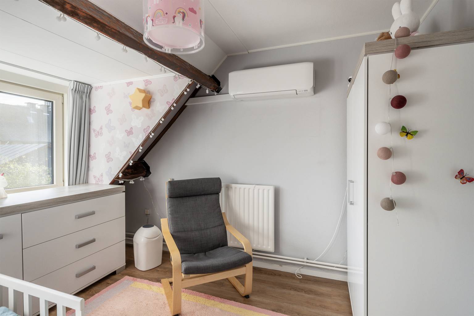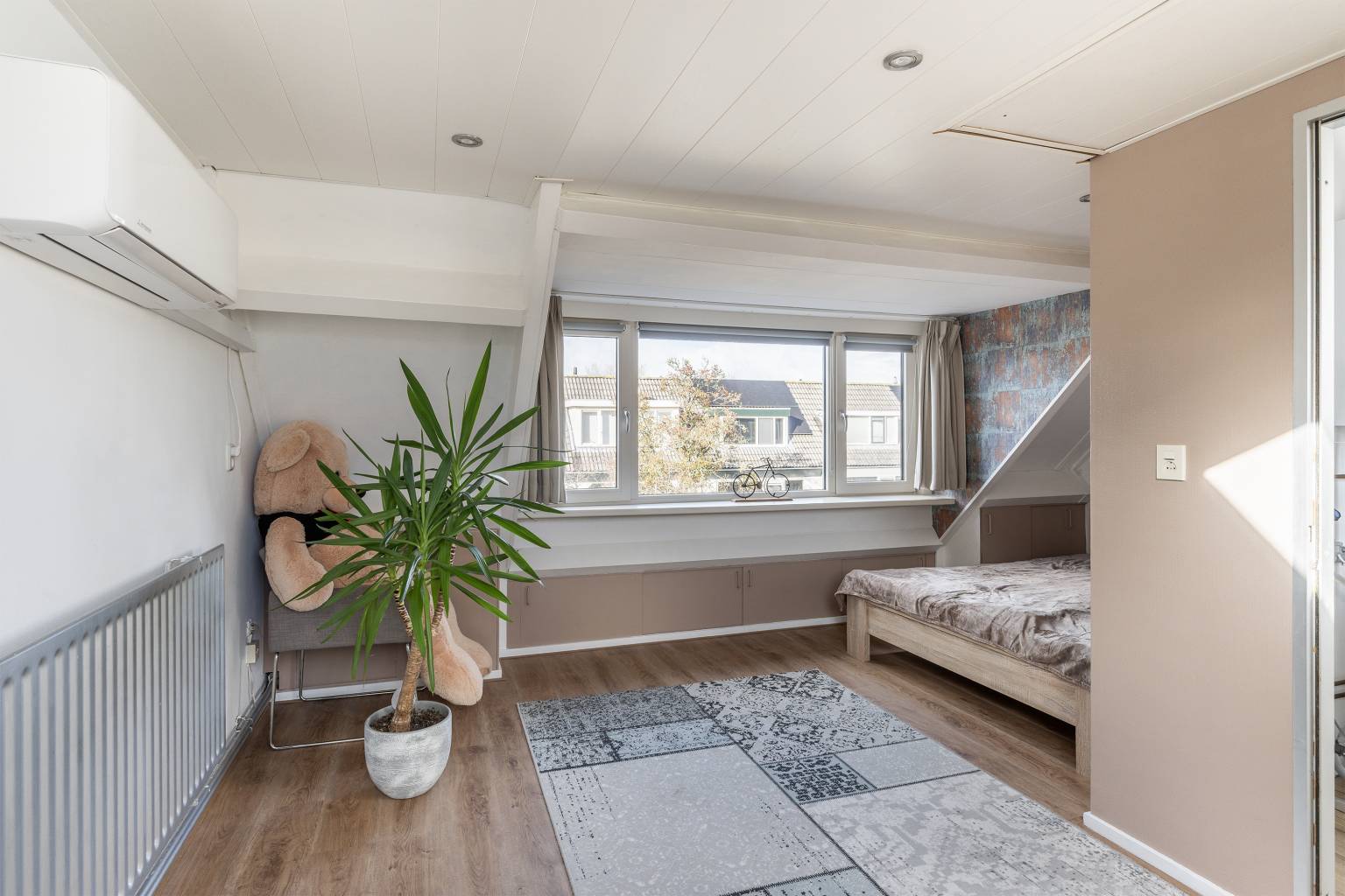 Al bij aankomst valt op hoe praktisch en compleet deze woning is, met een nette voortuin, een stenen berging én nog een tweede berging achterin de diepe, onderhoudsvriendelijke achtertuin. Binnen wacht een warm en verzorgd thuis, waar de PVC-vloer naadloos doorloopt naar de lichte woonkamer met grote schuifpui naar de tuin. De open keuken in U-opstelling is een echte blikvanger en perfect voor wie van koken houdt, met veel werkruimte en moderne apparatuur. Dankzij de airconditioning is het hier in elk seizoen aangenaam. Op de eerste verdieping vind je een ruime hoofdslaapkamer met airco en elektrisch screen, een nette en volledig uitgeruste badkamer en twee slaapkamers die met elkaar verbonden zijn, maar wel afzonderlijk te gebruiken zijn. Beide kamers profiteren van een brede dakkapel, mooie zichtbare balken, screens en één van de kamers over heeft airconditioning. De tweede verdieping voegt nog een volwaardige etage toe met een praktische opstelling voor de wasmachine, veel bergruimte onder de knieschotten en een vierde slaapkamer met dakkapel, airco, dakraam met zonwering en inbouwspots. Met kunststof kozijnen en dubbel glas, rolluiken op de begane grond, elektrisch bedienbare screens op de bovenste verdieping, insectenhorren, meerdere airco-units, zonnepanelen en energielabel A is dit een woning die je dagelijks comfort biedt én toekomstbestendig is. Daarbij woon je in een woonwijk die bekendstaat om haar fijne sfeer en goede voorzieningen. Een heerlijke plek waar je zo in kunt!