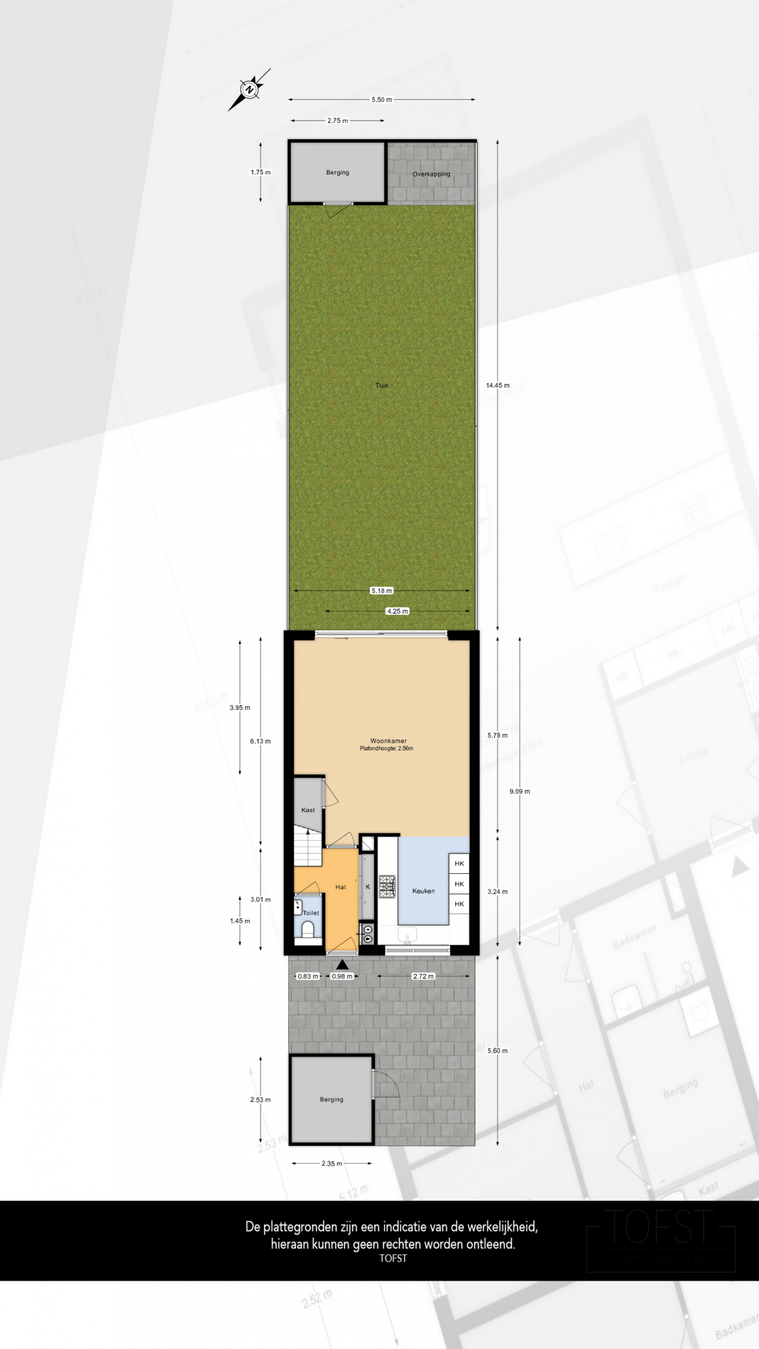 - 79 m² (14,45m Diep / 5,50m Breed)