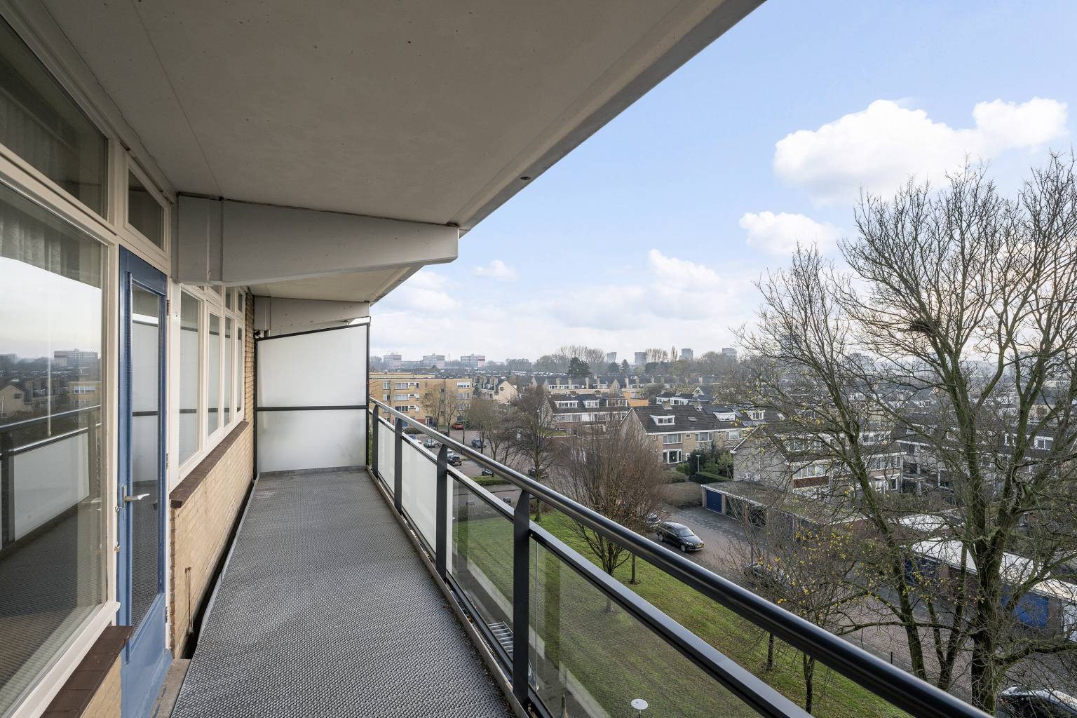 Het riante balkon is gelegen op het zuidwesten en biedt uitzicht over een leuke groenpartij met een speeltuintje.