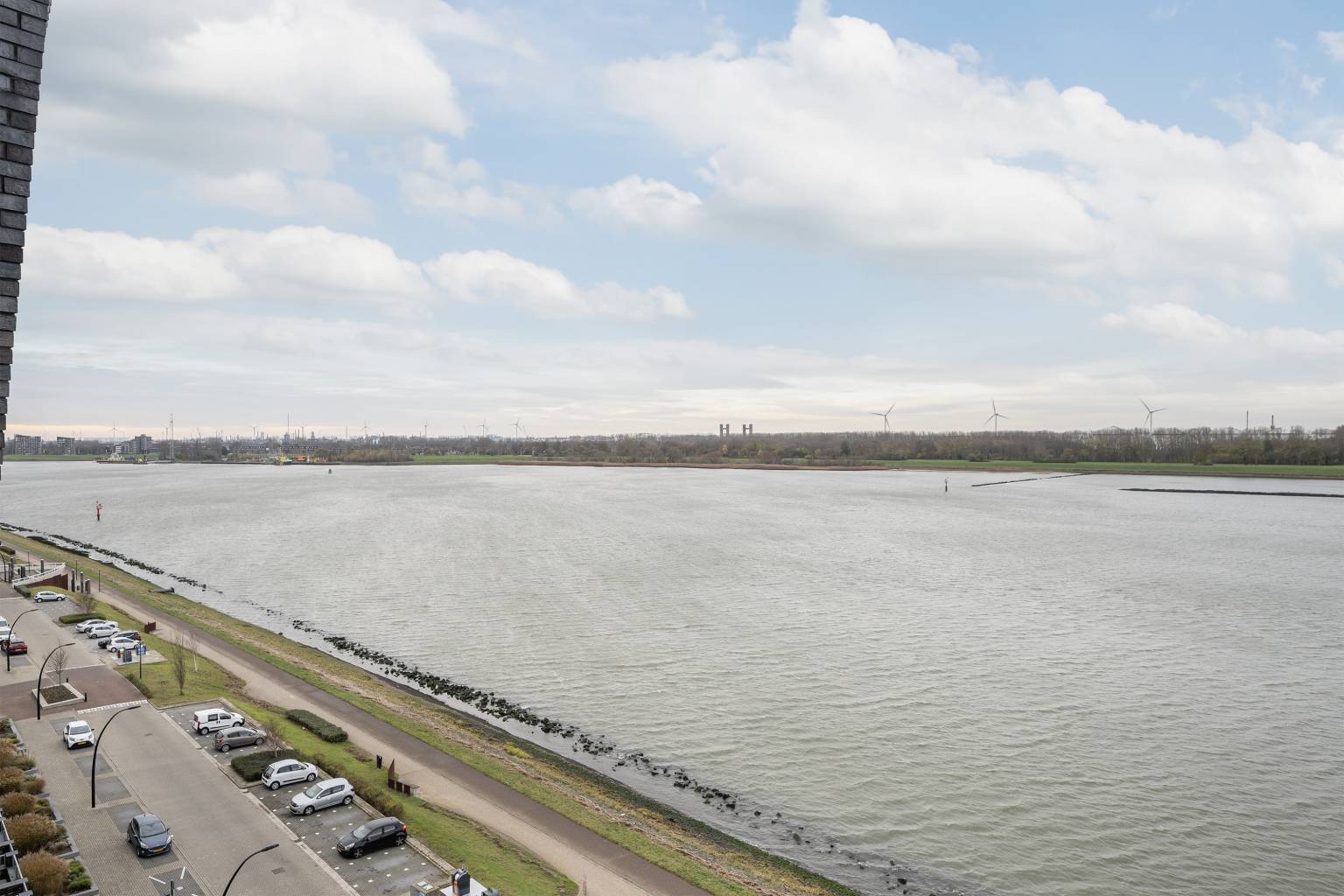 Langs de Nieuwe Waterweg wonen betekent elke dag genieten van de dynamiek van het water, waar schepen rustig voorbijtrekken en het uitzicht nooit hetzelfde is. Vanaf de zevende verdieping kijk je mooi uit over dit levendige vaargebied, terwijl de omliggende wijk alles biedt wat je nodig hebt. Winkels, horeca, wandelpaden langs het water, openbaar vervoer en goede uitvalswegen zijn allemaal dichtbij. Bovendien woon je in een modern en verzorgd complex met een afgesloten entree, eigen berging en een vaste parkeerplek op het beveiligde terrein, waardoor comfort en gemak hier vanzelfsprekend zijn. Binnen voelt het net zo prettig als buiten. Dankzij vloerverwarming en PVC-vloeren is het overal comfortabel, terwijl de strakke afwerking met vliesbehang rust en eenheid uitstraalt. In de woonkamer trekt de enorme glazen pui meteen de aandacht, want vanaf de bank kijk je zó uit over de rivier. Het balkon, deels overdekt en afsluitbaar met glazen panelen, vormt een verlengstuk van de woonruimte en is via zowel de woonkamer als beide slaapkamers bereikbaar. De open keuken in royale L-opstelling is compleet uitgerust met moderne inbouwapparatuur. De slaapkamers liggen heerlijk rustig aan de balkonzijde en de moderne badkamer biedt een fijne inloopdouche, een luxe badmeubel en sfeervolle inbouwspots. In de interne berging vind je niet alleen ruimte, maar ook de warmtepomp, WTW-installatie, boiler en de aansluiting voor de wasmachine zijn netjes weggewerkt. Met energielabel A, drievoudig glas, elektrische screens, een warmtepomp en een actief beheerde VvE is dit een toekomstgerichte én comfortabele plek om met veel plezier thuis te komen.