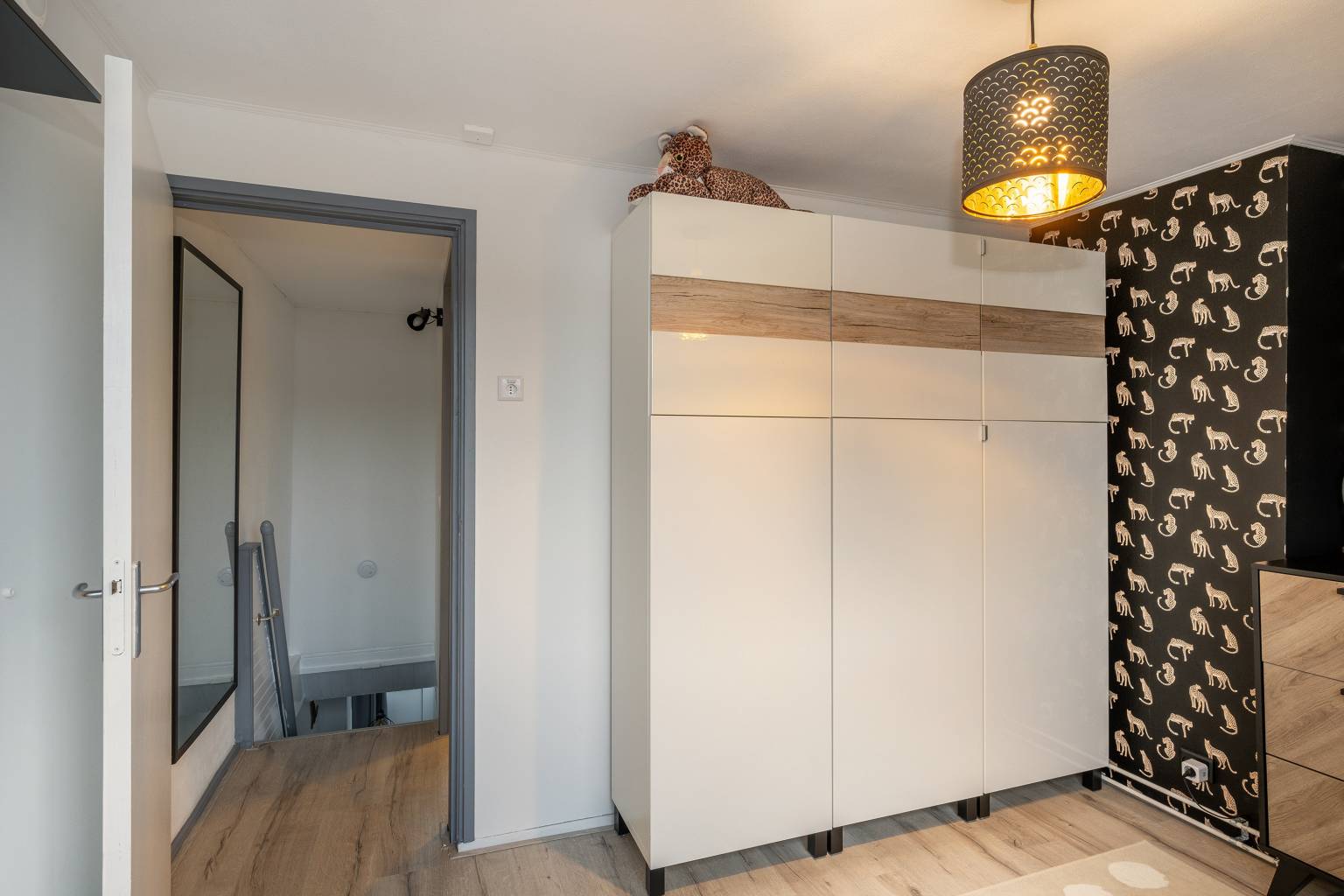 Na de trapopgang is het portaal bereikbaar dat toegang geeft tot de twee slaapkamers. Beide hebben een laminaatvloer die is doorgetrokken over de gehele verdieping.