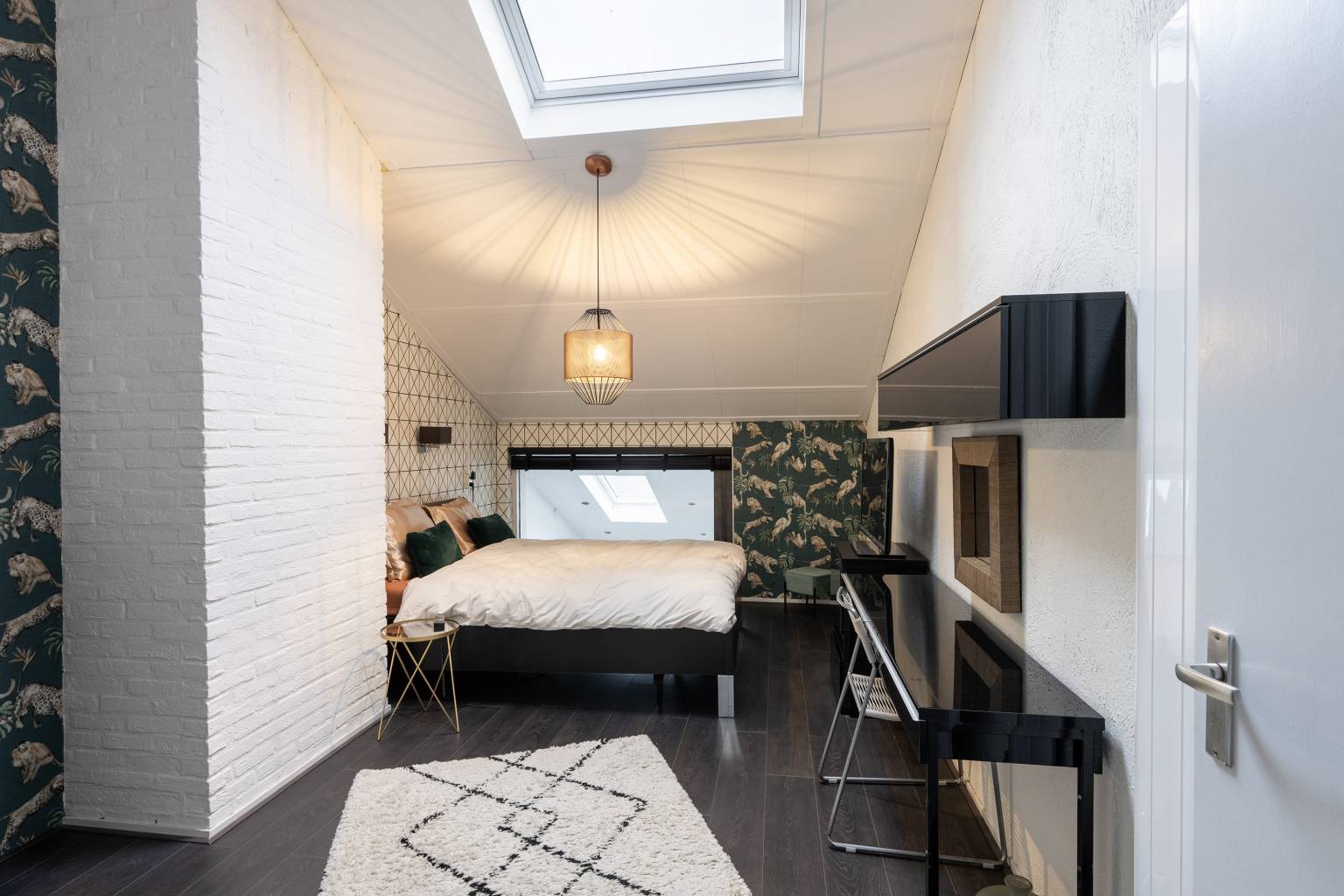 De eerste slaapkamer is gelegen aan de voorzijde en is voorzien van een laminaatvloer en een vaste kast met schuifdeuren. De tweede slaapkamer heeft een open toegang en is op dit moment in gebruik als inloopkast en is eveneens voorzien van een laminaatvloer. De derde slaapkamer is gelegen aan de achterzijde en beschikt over twee dakramen in de schuine kap en er ligt vloerbedekking. In deze kamer bevindt zich een infrarood sauna en leent zich hierdoor uitstekend voor een sportruimte. De vierde slaapkamer beschikt over een dakraam in de schuine kap en op de vloer ligt laminaat. Het aanwezige raam kijkt uit over de eetkamer en de aanwezige koof zorgt voor een speels accent.