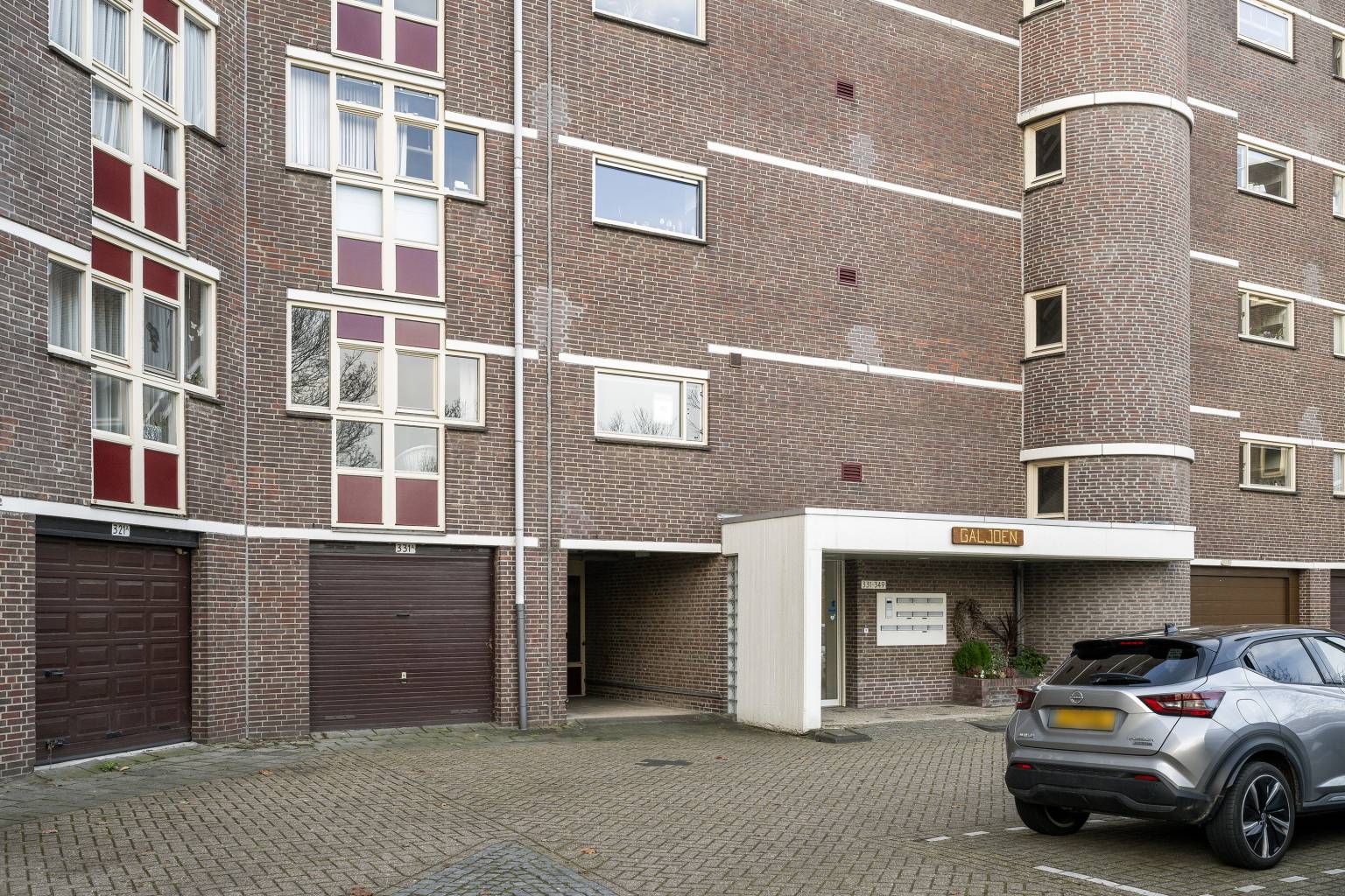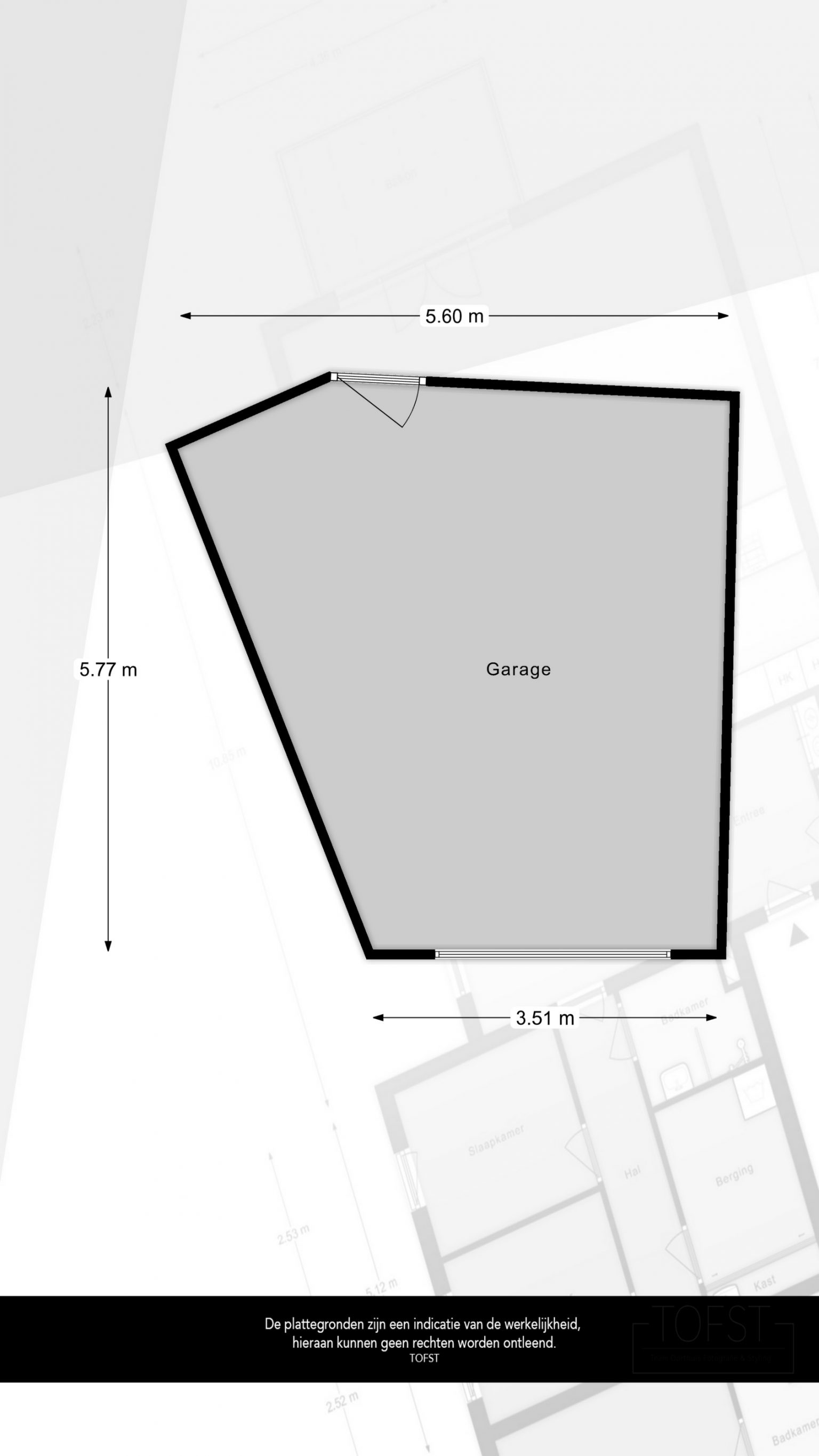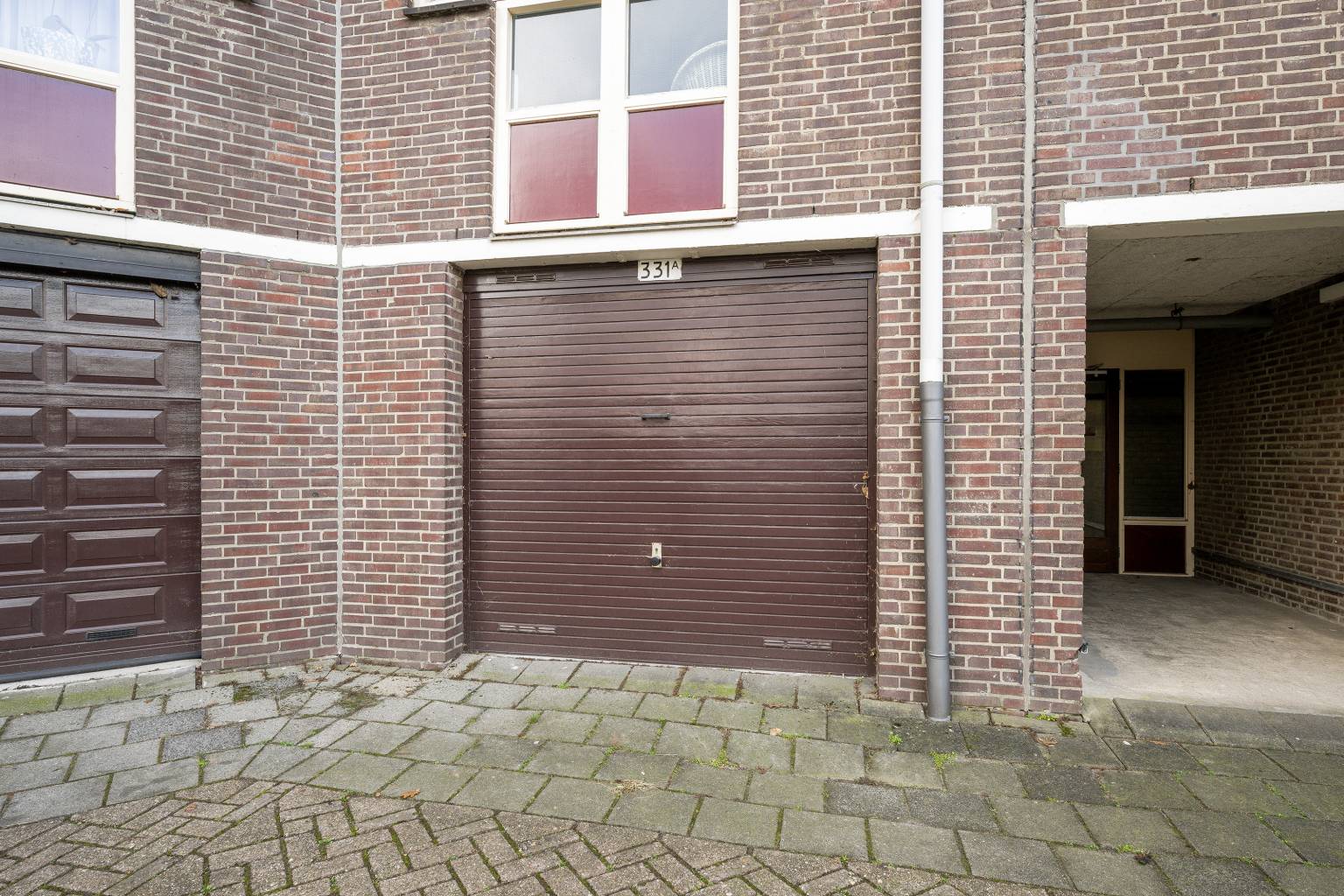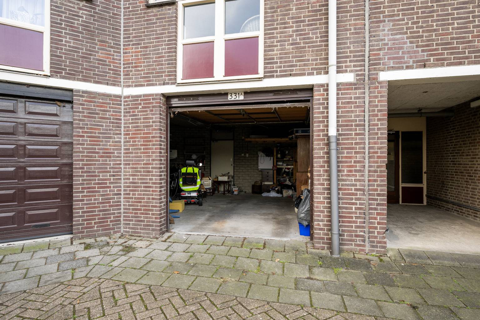 De garage is gelegen naast de centrale entree en is voorzien van verlichting. De garage is bereikbaar vanuit de berging gang en de garagedeur aan de voorzijde.
