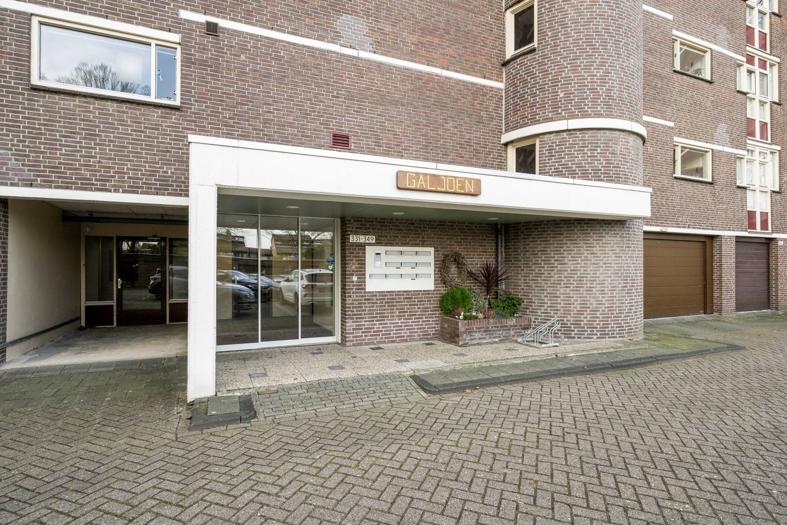 De afgesloten entree beschikt over een bellentableau en de brievenbussen. Na de entree is de centrale hal bereikbaar, vanwaar er via een lift en een trap toegang is tot de verdiepingen en er een deur is naar de berging gang, die toegang geeft tot de garage.
