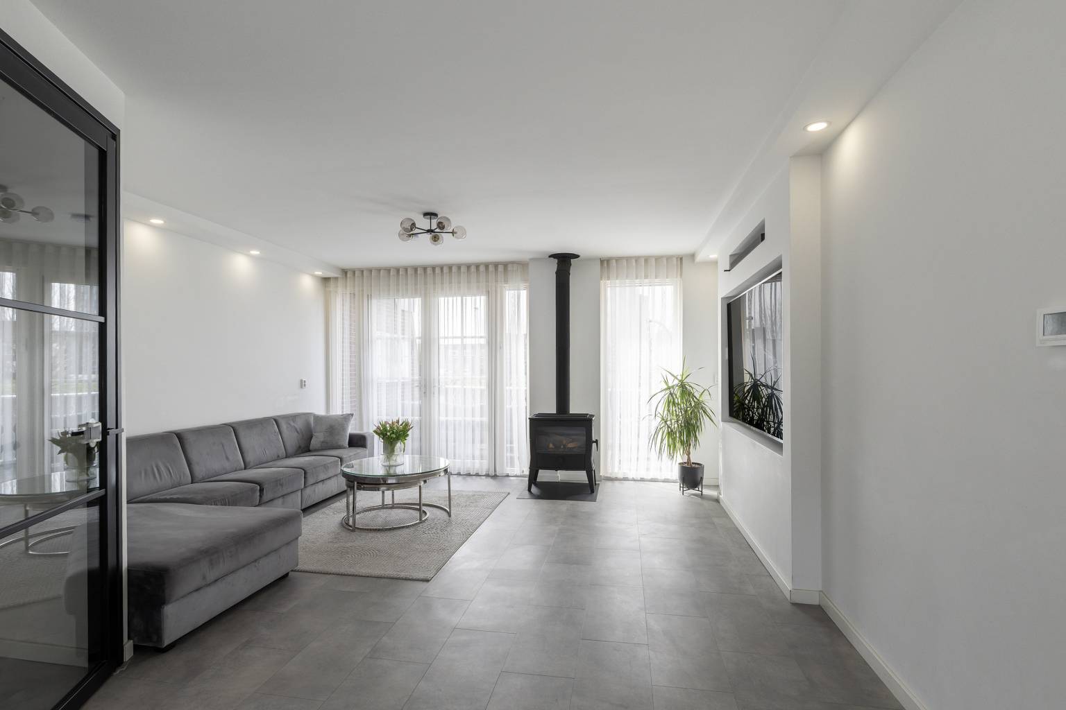 - Houtkachel in de woonkamer
