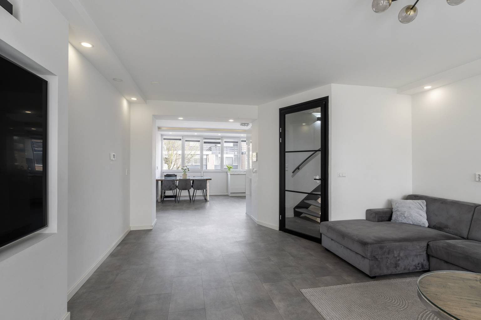 - De woonkamer is voorzien van elektrisch bedienbare zonwering