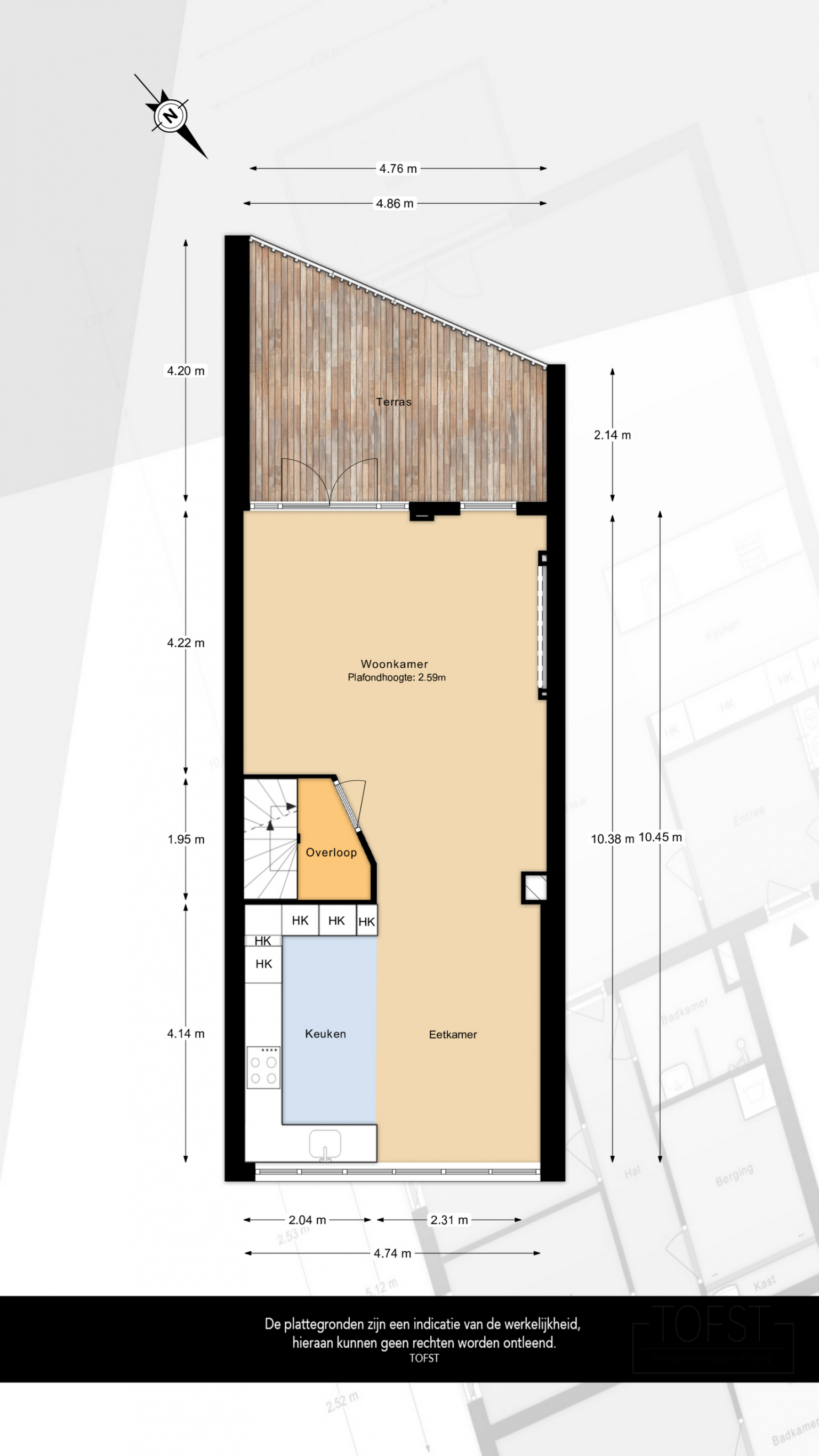 - 66 m² (12,84m Diep / 5,15m Breed)